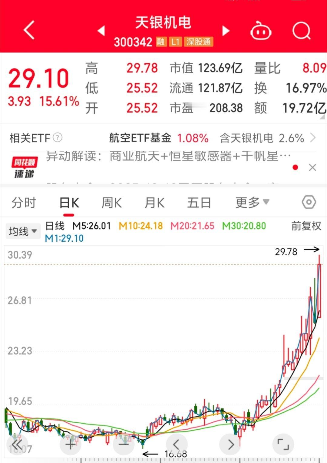老牛在12月9日跟踪关注的:天银机电 今天又是大-涨!股价也再创新高!