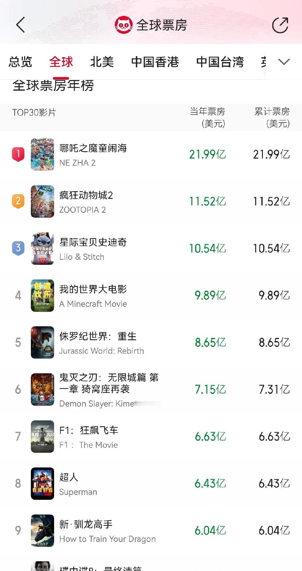 疯狂动物城2全球第二,预计最终16—17亿刀。 北美开局一般,不过走势强劲,预计能超越第一部的3.4亿刀,中国票仓库落点在40亿人民币左右,希望能上40。
