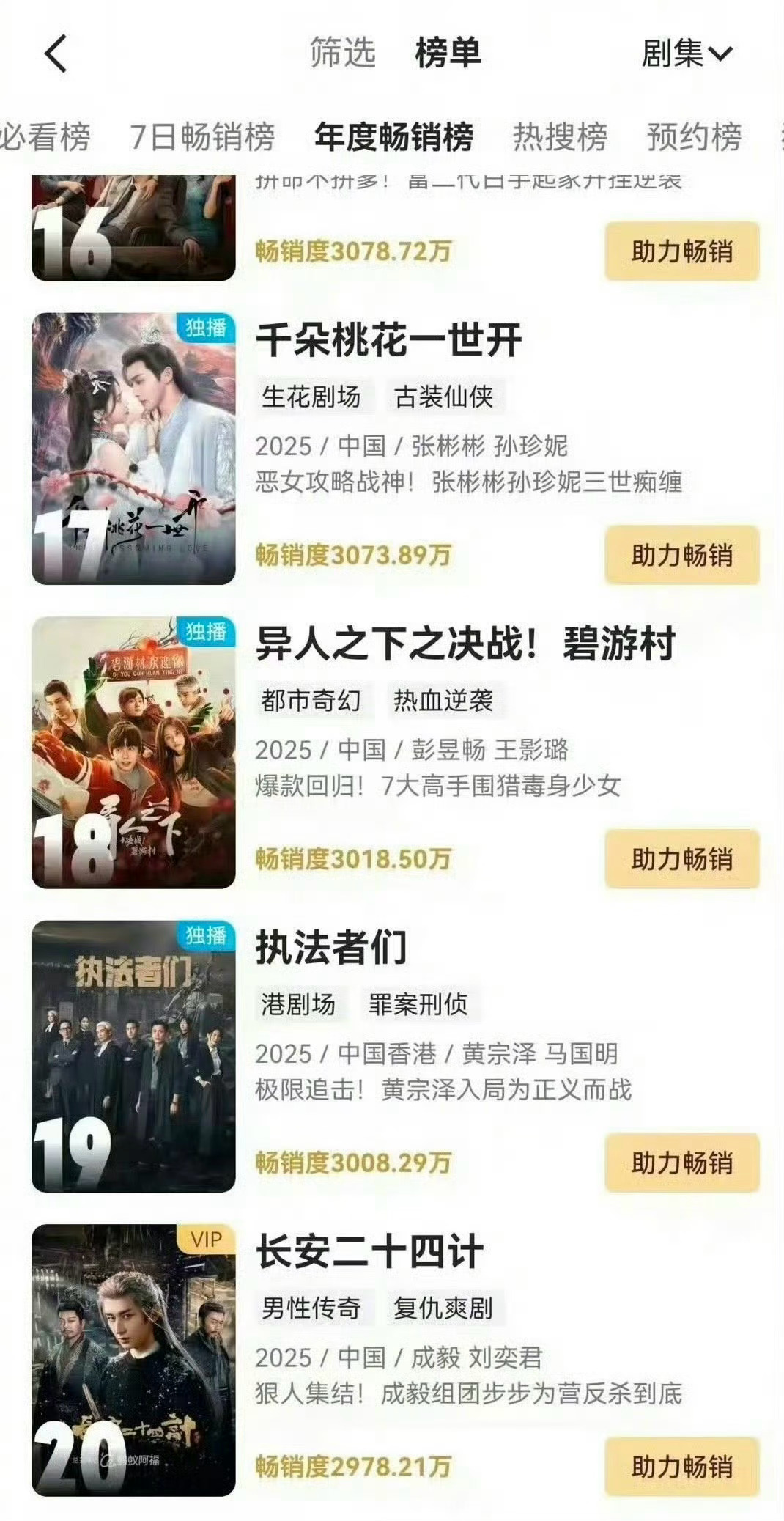 成毅的《长安二十四计》进了平台的年度畅销榜,昨天在云合排第二,什么水平? 曝成毅助理打粉丝
