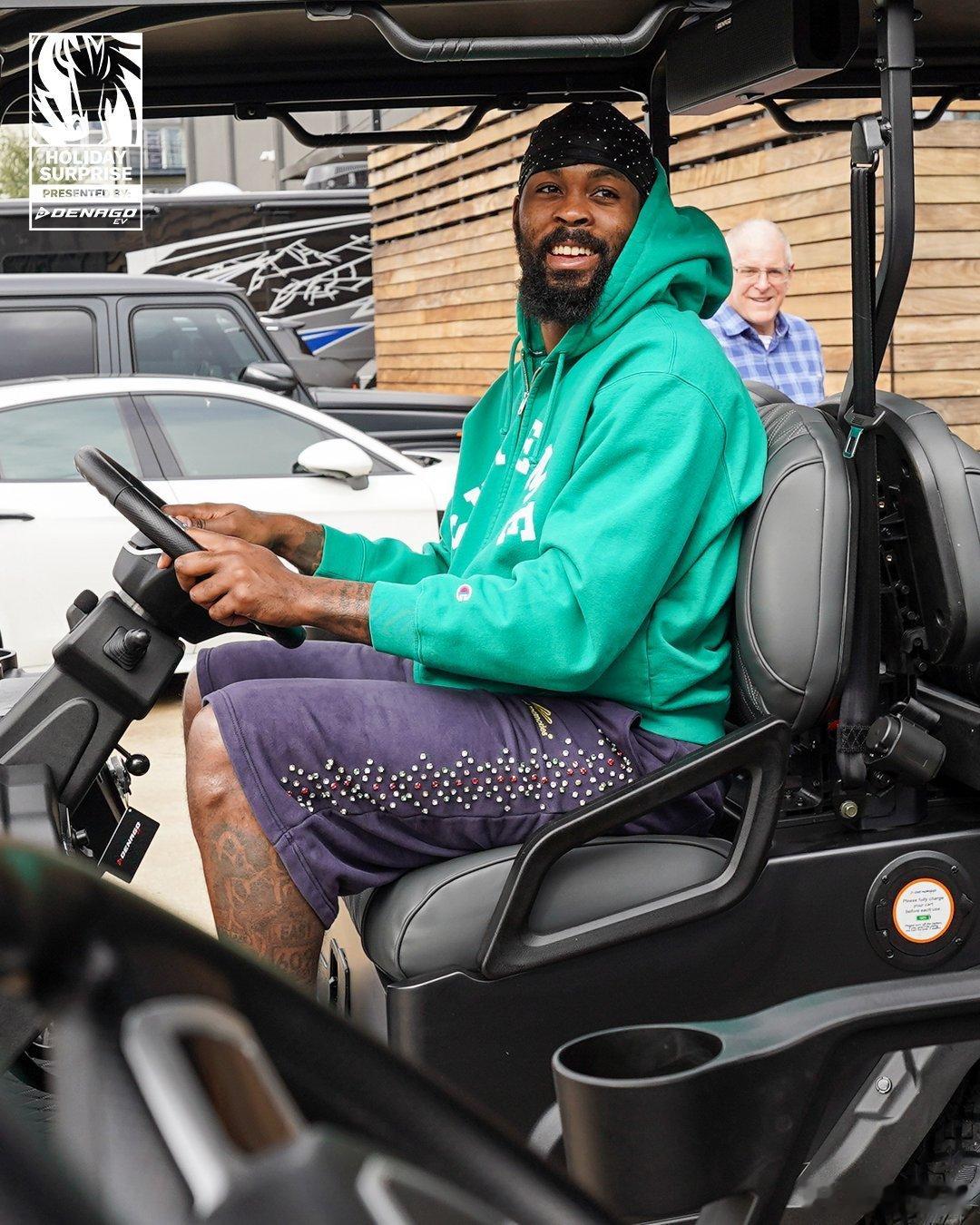 MFFL 我牛球员们参加社区活动。2026NBA全明星投票欧文送队友高尔夫球车活
