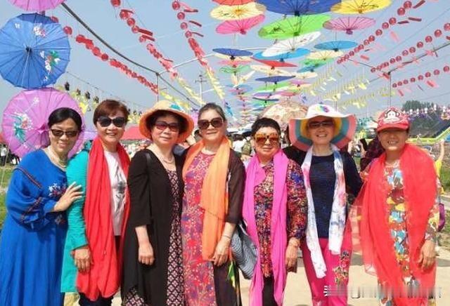不知道你们发现了没?这些退休之后的大妈们不管在什么场合,都喜欢把自己打扮的这么花里胡哨的。 有些戴着帽子,有些戴眼镜,还有大大的长丝巾,衣服颜色也是特别的艳丽,可能每个人的喜爱不同,我还是更喜欢得体大方,素净一点的颜色好看一些。