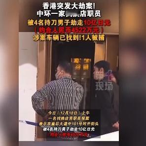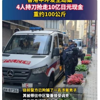 疯了!香港中环4悍匪持刀掠走10亿日元 4500万巨款眨眼消失 2025年12月18日9时06分 香港中环皇后大道中181号新纪元广场旁 惊天劫案轰然上演。4名持刀匪徒精准盯上找换店4名职员 目标直指行李箱里的10亿日元现金 折算人民币足足4500万元。匪徒下手干脆利落 得手后跳上接应车辆 油门一踩溜得无影无踪。 4名受害人毫发无伤 含一名39岁持港澳通行证的内地男子 一名50岁本地男子 其余两人身份暂未披露。警方接报后火速奔赴现场 拉网式兜截排查 很快在上环苏杭街138号路边 锁定一辆涉案可疑私家车。目前警方已抓获一名劫匪 押往中区警署深挖线索 另外三名匪徒仍在逃 港岛总区重案组全面接手 这起大案成了全城关注的焦点。 光天化日闹市持刀抢巨款 这伙悍匪胆子肥到敢捅天。监控密布的中环 匪徒怎么精准踩点 怎么全身而退 难道背后有高人指点?评论区来聊聊 你觉得剩下的三个漏网之鱼能藏几天?