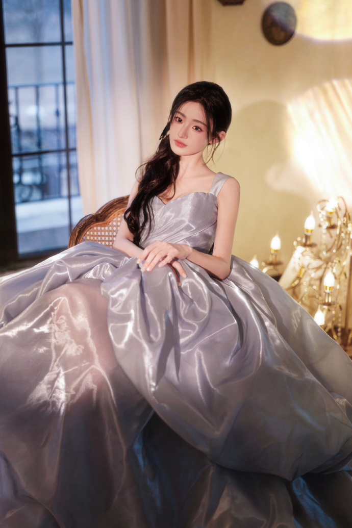 杨雨潼黑发辛德瑞拉搜狐盛典最惊艳的公主驾到!杨雨潼黑发配蓝裙的造型绝了,低头浅