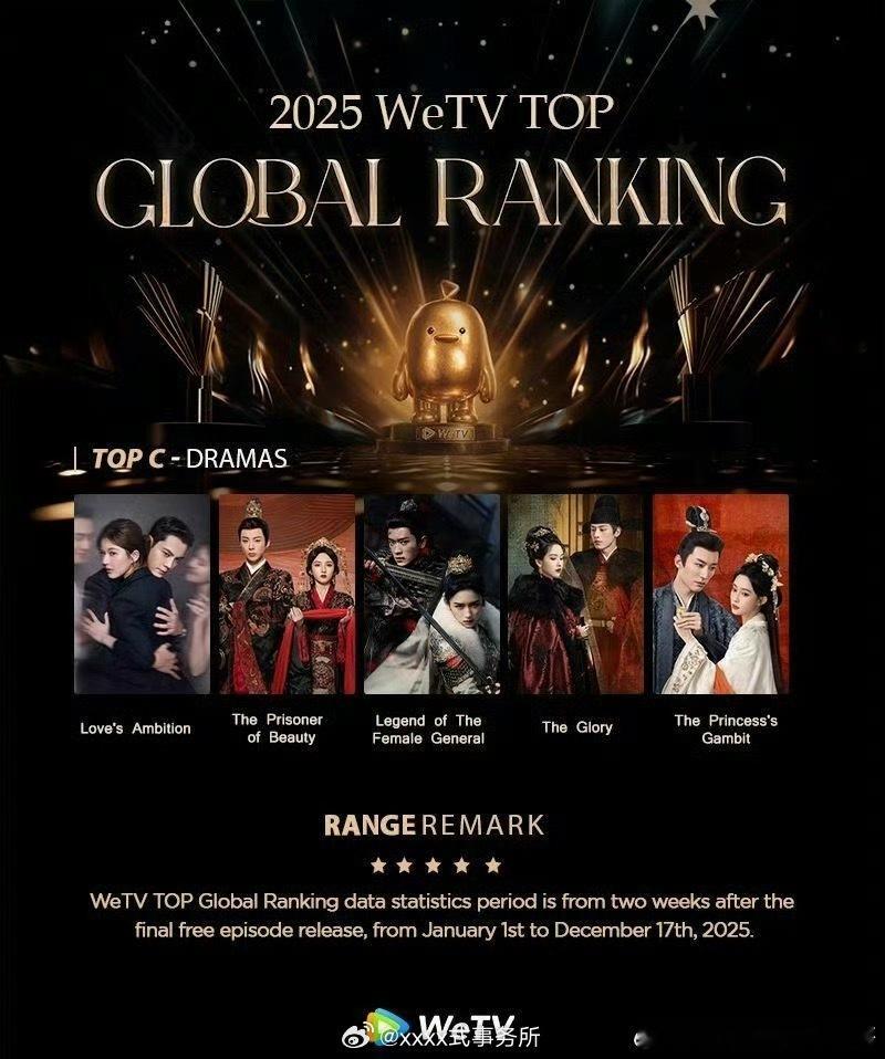 2025腾讯WeTV全球国产剧前五许我耀眼,折腰,锦月如歌,雁回时,桃花映江山