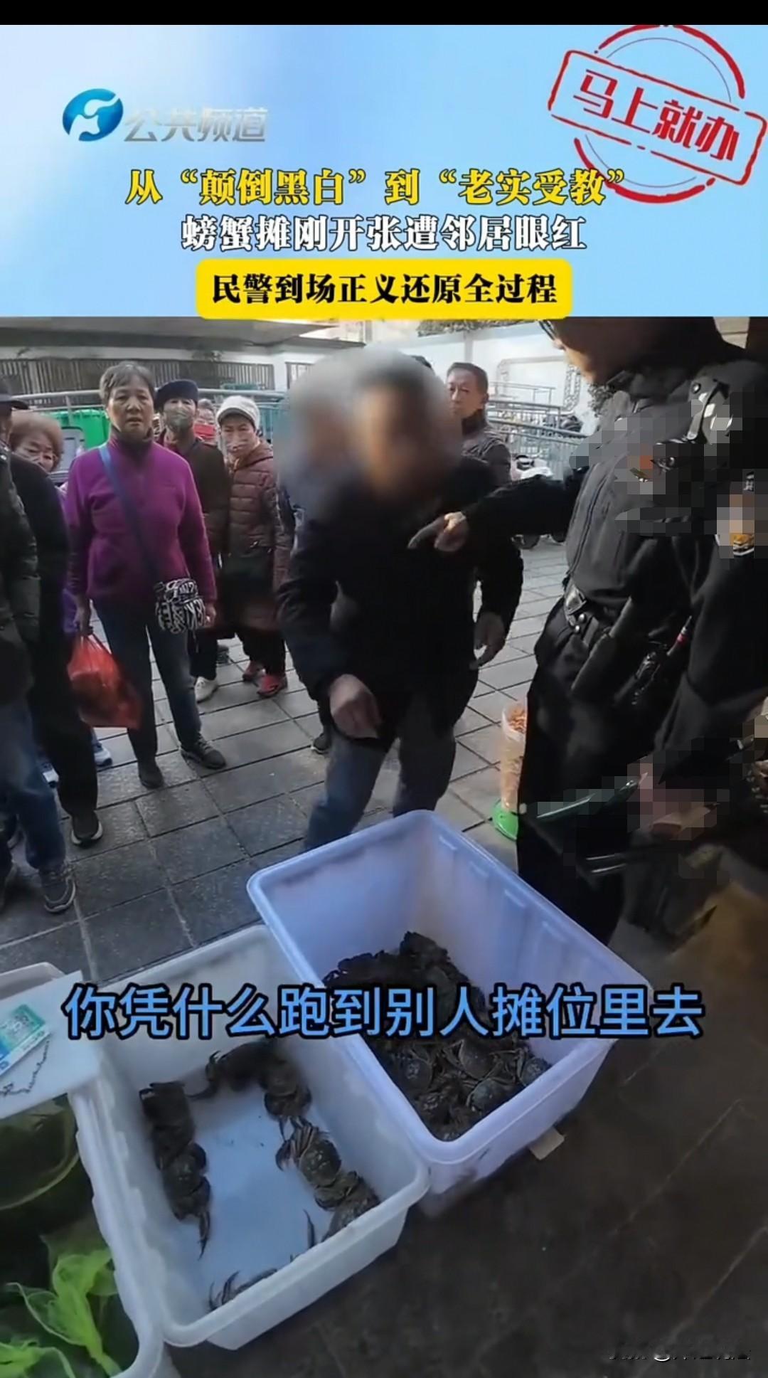 南京,一名男子开螃蟹店生意火爆,竟惹得隔壁干货店老板夫妻醋意大发。老板夫妻非要逼他挪摊位,被拒后直接撒泼,摔凳子、骂脏话,闹得他没法做生意。民警赶来,老板夫妻还满嘴谎话,直到监控曝光,这下彻底栽了,最后被民警带走了。 这名男子好学肯干,瞅准螃蟹生意赚钱,就在市场租了个门店,风风火火开起了螃蟹店。 他旁边是家干货店,两家卖的东西八竿子打不着,本来该是井水不犯河水。 可螃蟹店开业这天,买螃蟹的人排起了队,压根没人往干货店那边挪步。干货店老板夫妻心里酸溜溜的,看这名男子哪儿都不顺眼,左瞅瞅右看看,一门心思想找茬,生怕他多赚一分钱,好像顾客买了螃蟹,就没钱买他们的干货似的。 老板夫妻找上这名男子,非要他把摆着的螃蟹再往旁边挪挪。这名男子觉得纳闷:两家摊位之间明明有根柱子,自己的货全摆在柱子里头,没越界,更没占着对方的地方,凭啥要挪? 这话一出口,干货店老板夫妻当场就炸了,立马吵吵起来,气焰特别嚣张。女老板凑到这名男子跟前指指点点,骂骂咧咧说他不讲道理;男老板更横,抓起这名男子的小板凳就往地上摔,嘴里还不干不净地放狠话。 这名男子也不示弱,警告老板夫妻别骂人,再骂下去他可不客气了。 老板夫妻年纪比这名男子大些,估计是怕真动手吃亏,居然抓起旁边的小袋子狠狠摔在地上,看着就挺危险。 这名男子不想跟他们纠缠,再闹下去生意就真黄了,赶紧掏出手机报了警。 民警赶到后,干货店老板夫妻耍起了无赖,压根不让这名男子插嘴,还颠倒黑白:明明是他们先骂人、摔东西,甚至想动手,却硬说这名男子要打他们,还摔坏了他们的凳子。 民警一眼就看出不对劲,觉得这事有蹊跷,就问这名男子有没有监控。 这名男子说有,当场调出来一放,事情的来龙去脉看得一清二楚。民警当场就火了,呵斥道:“在我们面前还敢撒谎!上一个在市场里横行霸道闹事的,早就被拘留了,你们还敢顶风作案?” 老板夫妻还想狡辩,民警直接撂下话:“跟我回派出所,好好处理!” 这下老板夫妻蔫了,再也不敢吭声,只能乖乖跟着民警走。这名男子有监控证明清白,能证实是老板夫妻无理取闹,所以没受任何处罚。经这么一闹,老板夫妻以后再也不敢来找茬了。 有人就说了:生意各做各的,人家生意好是人家的财运,又不是跟你卖一样的东西,有啥好眼红的?邻里之间要是能互相帮衬、招揽顾客,那才是双赢的好事啊! 一、干货店老板夫妻眼红螃蟹店生意好,当众辱骂店主,触犯了公然侮辱他人的法律红线 《治安管理处罚法》第四十二条:公然侮辱他人或者捏造事实诽谤他人的,处五日以下拘留或者五百元以下罚款;情节较重的,处五日以上十日以下拘留,可以并处五百元以下罚款。 市场是公共场所,老板夫妻当众骂人不是普通拌嘴,已经违法了,警察可以依法罚钱或者拘留他们。 二、干货店老板气不过,抓起螃蟹店的小板凳就摔,触犯了故意损毁他人财物的法律红线 《治安管理处罚法》第四十九条:故意损毁公私财物的,处五日以上十日以下拘留,可以并处五百元以下罚款;情节较重的,处十日以上十五日以下拘留,可以并处一千元以下罚款。 老板是故意砸别人东西的,不管东西值多少钱,都得担责任,除了接受处罚,还得赔店主的钱。 三、干货店老板夫妻没事找事逼店主挪摊位,又吵又闹搅乱市场,触犯了寻衅滋事的法律红线 《治安管理处罚法》第二十六条:有下列行为之一的,处五日以上十日以下拘留,可以并处五百元以下罚款;情节较重的,处十日以上十五日以下拘留,可以并处一千元以下罚款:(一)结伙斗殴的;(二)追逐、拦截他人的;(三)强拿硬要或者任意损毁、占用公私财物的;(四)其他寻衅滋事行为。 老板夫妻纯粹无理取闹,影响别人做生意还搅乱市场秩序,就是寻衅滋事,警察肯定要依法处理。 对于这件事,大家如何看待? 素材来源于河南百姓315 ,2025年12月18日