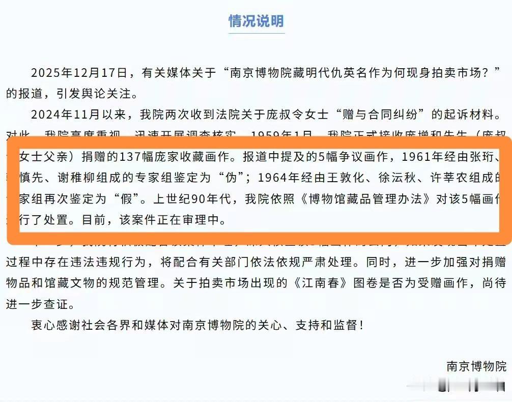 两次专家鉴定,均为“假”“伪”,为何不通知捐赠人?为何最终又消失了呢?那5幅画又是如何处置的呢?