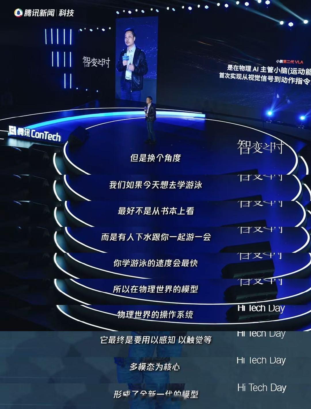 何小鹏说机器人靠模仿人才能学会走路 2025腾讯ConTech大会 智变之时 跳出语言桎梏,在实景中感知,在模仿中成长,这是AI进化的关键一步。