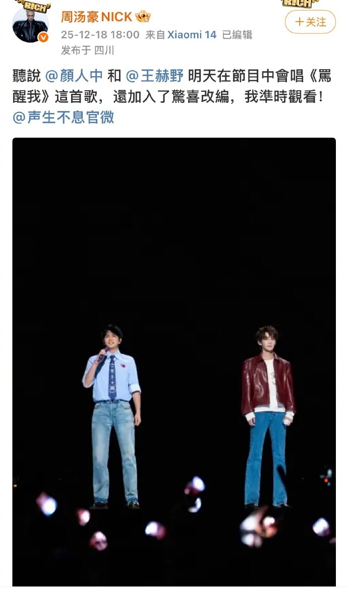 王赫野第一次在舞台上名正言顺的骂王赫野和颜人中唱《骂醒我》,王赫野评论原唱说自