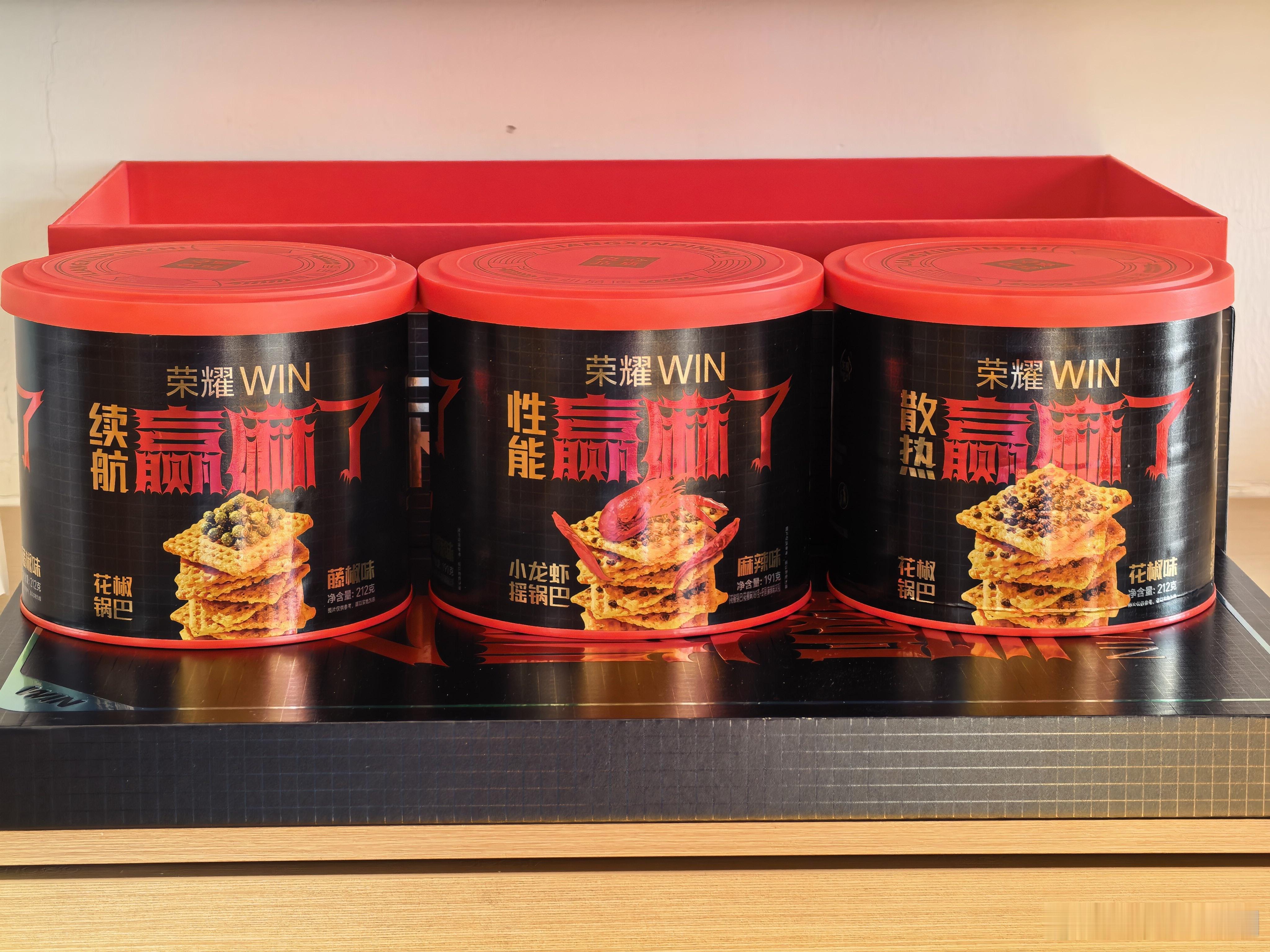 早上起来就收到这么个大包装,原来是WIN赢麻了,锅巴好吃,吃多了嘴巴里好麻,有没有在我一个城市的,可以来拿,我这里还有两罐!荣耀真赢麻了!