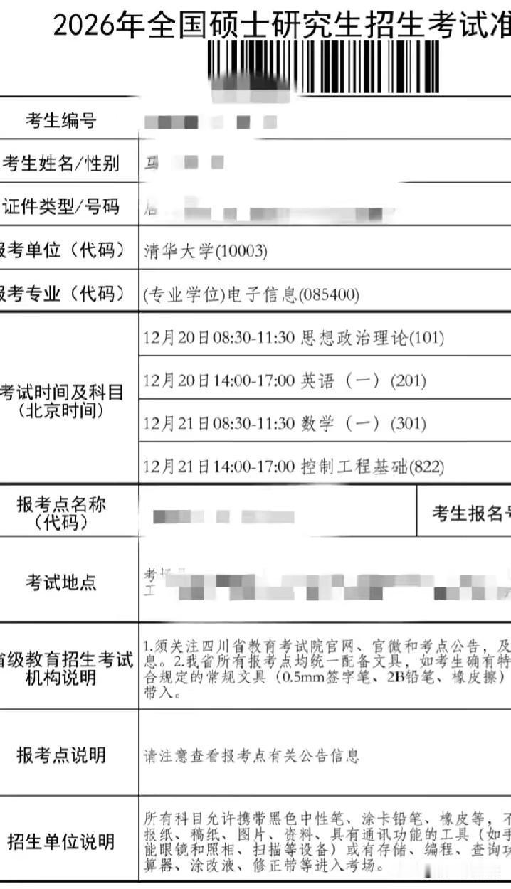 你的研究生考试准考证都打印了吗?看一下准考证注意事项,有一些事项还是要注意的哦! 准考证建议打印两张! 身份证和准考证建议考前检查三遍,注意检查三遍,检查三遍,检查三遍。重要的事情说三遍。 进考场前记得把自己的手机闹铃给关了哈,考到中间外面的手机闹铃响了,虽然别人不知道是你的,但是你自己心里肯定会很尴尬滴(过来人)。 但是不管它怎么响,你都不要管,中途跑出去了,那算违规哦 最后,祝大家金榜题名!