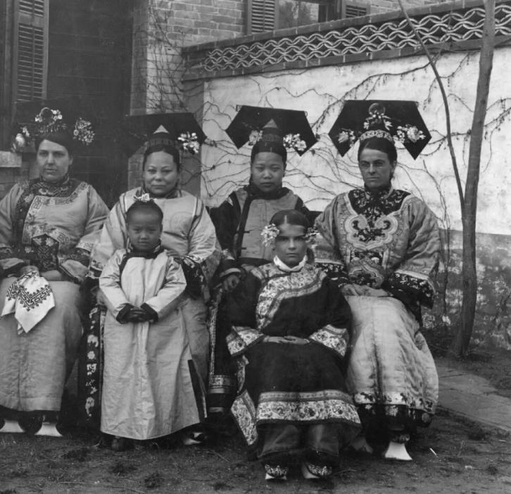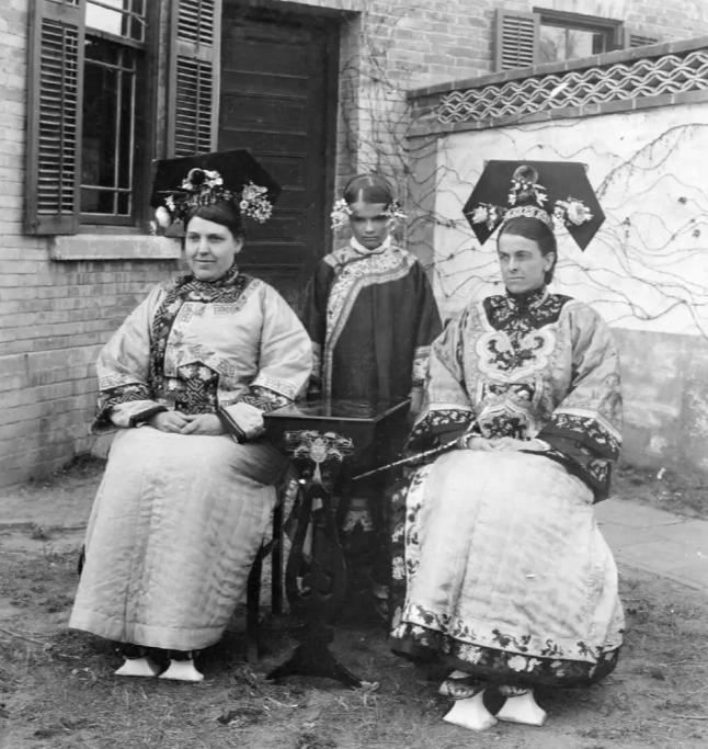 洋人穿着满清的服饰,看着是不是很有一种魔幻的感觉,这两张老照片选自《1870-1934年北京摄影集》。这份珍贵的北京摄影集记录了1870年至1934年间的历史瞬间,包含138张高清无水印老照片。 不过,书里没有记载这些穿着满清服饰的洋人,是什么来历和身份。 但是呢,在晚清的时候,也有一部分洋人官员,这些或许是洋人官员的家眷吧。也是入乡随俗,穿上了满清服饰。估计也是图个一时新鲜,穿着拍个照吧,平常的时候还是穿着她们的西洋服装。