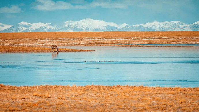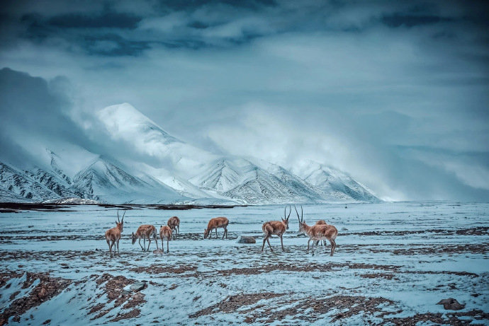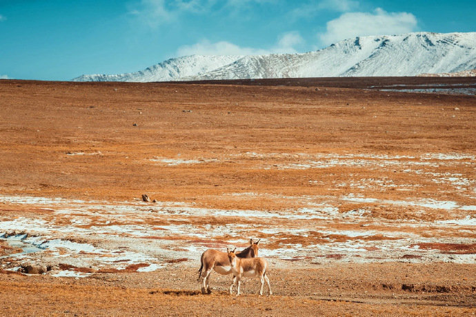 可可西里,这里蓝天和大地的色彩对比强烈,没有任何空气污染,纯净的让人心存敬畏。