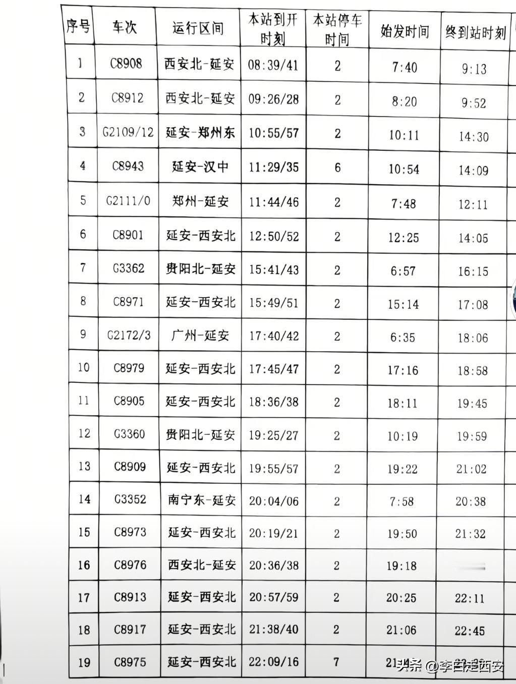 西延高铁某车站流出的列车时刻表 西安到延安高铁即将通车, 前期将由西安北站始发终到 待2026年西安东站建成后, 将接入西安东站始发终到。 标杆列车西安北到延安运行时间 1小时32分。 具体开通运营时间以官宣为准。 冬日生活打卡季 冬日随手拍 西安延安高铁