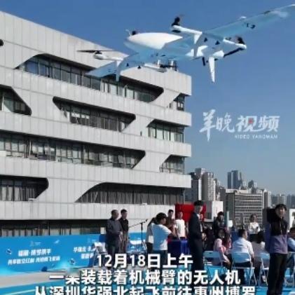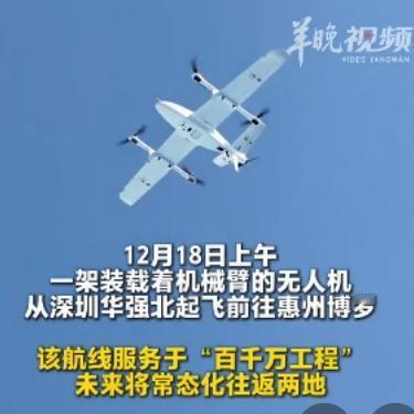 太牛了!深圳无人机带机械臂跨城狂飙80公里仅用半小时 今天上午在深圳华强北