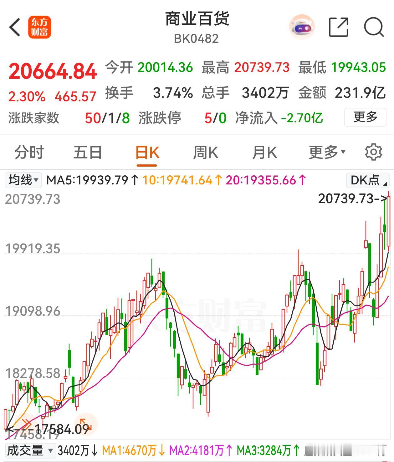 商业百货走出了独立行情,近期个股连板频出,百大集团10天6板,东百集团10天5板,中央商场10天4板,今天更掀起了涨停潮。 在大盘陷于调整,科技成长大幅亏钱的时候,商业百货这边风景独好,赚钱效益十分突出,持仓商业百货股的人们盈了。不过商业百货上涨的逻辑还是不清晰,虽然消费是大题材,但真正的消费板块消费电子、食品饮料、轻工制造、社会服务、美容护理等并没有表现,就只是商业百货大涨。看了一下百货店的实况,除了餐饮楼层有些人气外,其他楼层很是萧条,服务员比顾客多,这业绩能有起色吗?至于退税商店,有资格的店不少,境外旅客的贡献也不会很多,指望这项业务改善公司业绩过于乐观了。实际上商业百货公司在电商的冲击下,业绩一年不如一年,现在也没有看到触底的迹象。 虽然市场总是对的,但市场也会出现偏差。商业百货大涨难有业绩支撑,可能只是大游资的借势炒作而已,获利已经很丰厚了,散户谨防在高位当接盘侠。