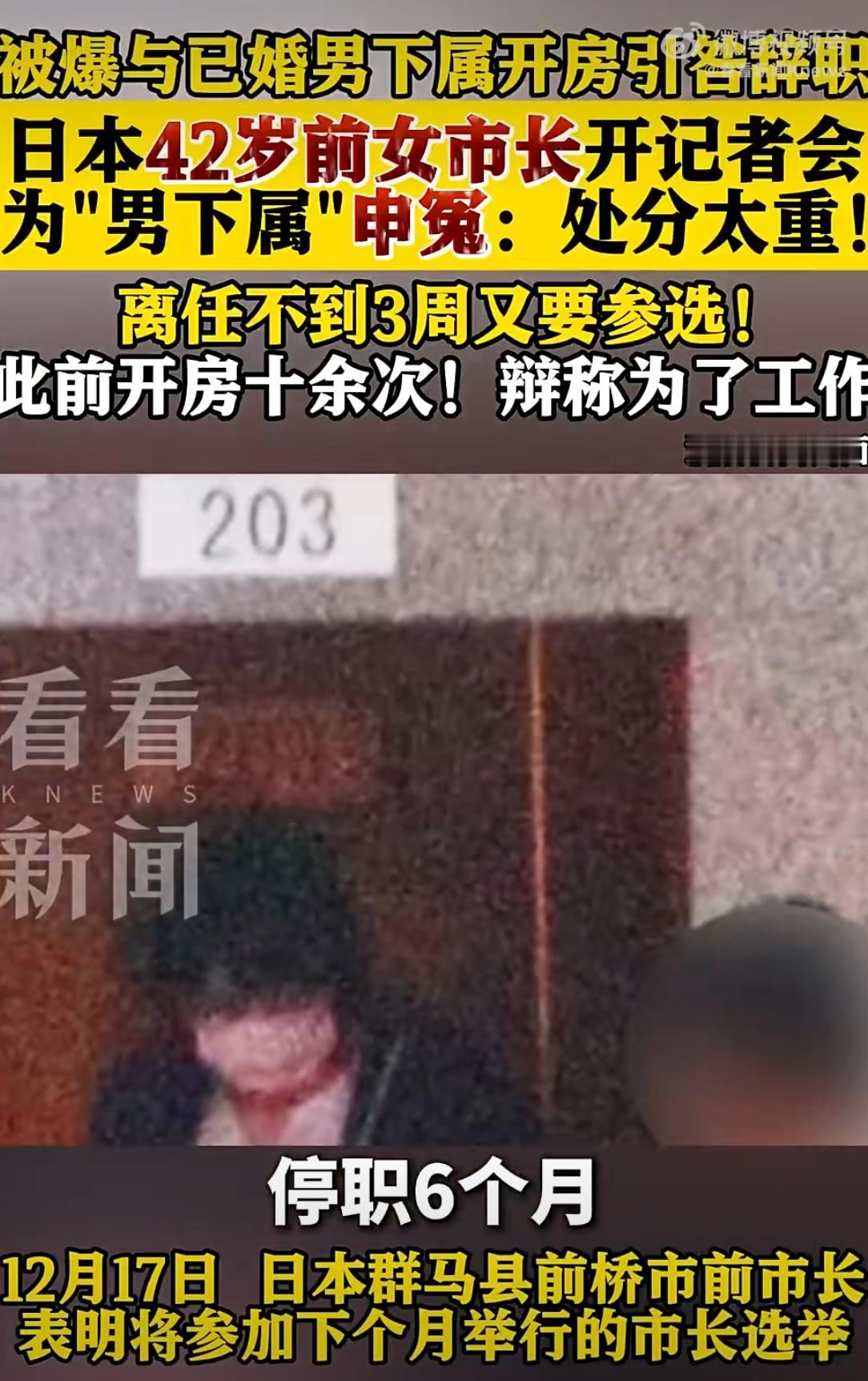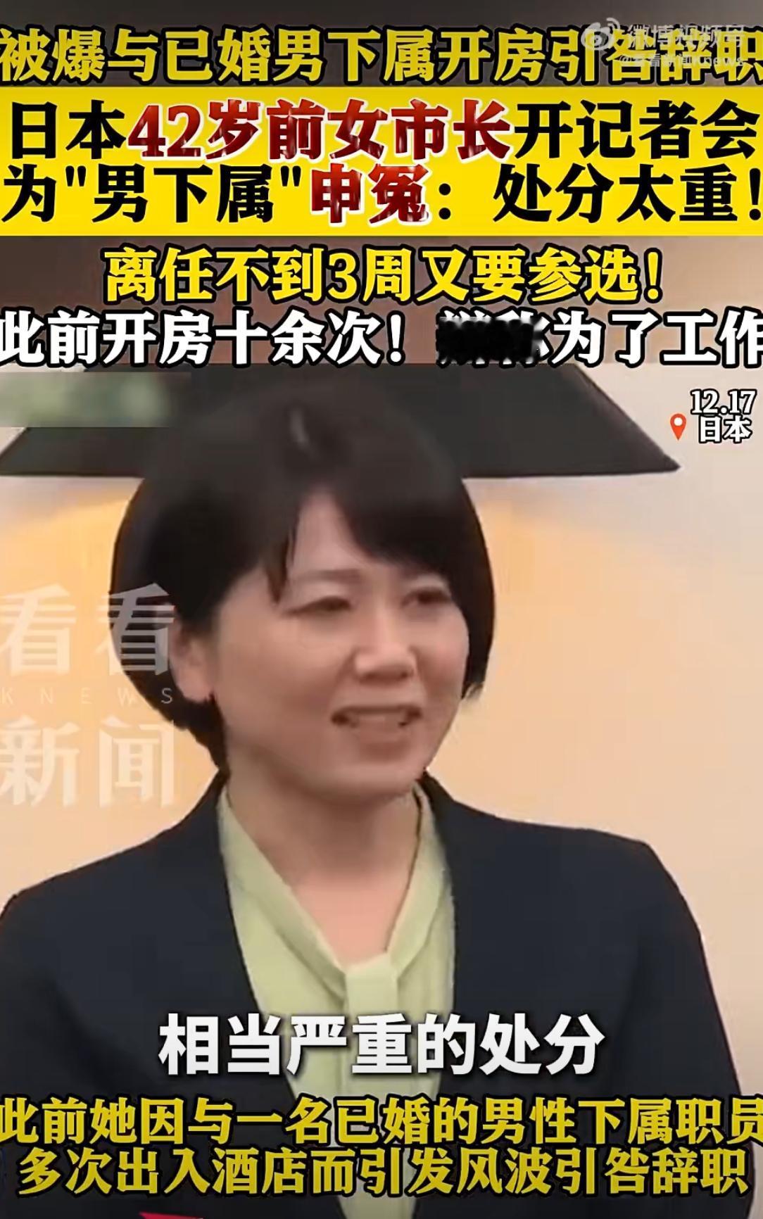 离谱操作!日本前女市长因与已婚下属酒店密会辞职,如今为其“申冤”还要再参选