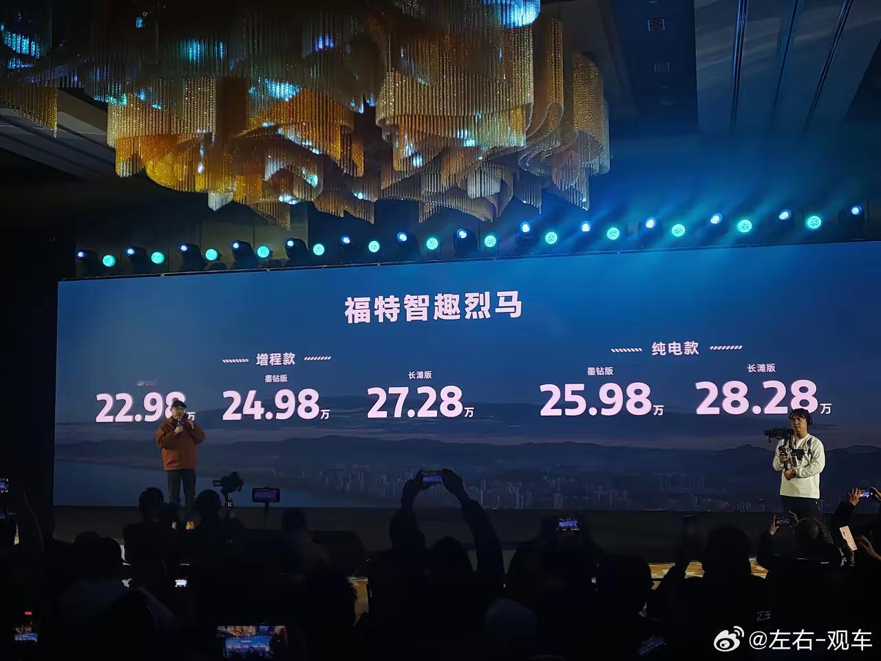 汽车民生 新车前瞻:全新福特智趣烈马,定位中型SUV,纯电、增程齐上,方盒子造型,户外能力、露营实力不可小觑!由江铃福特开发的全新车型——福特智趣烈马此前已开启预售,预售价22.98万至28.28万元。该车预计12月19日在国内正式上市,价格可能还会下沉一点。该车与所有福特旗下的车型不同,引入了当下流行的方盒子外观造型。他还是一款与时俱进的新车,摒弃燃油动力,提供纯电和增程两种版本。新车在行业内首创电动举升车顶,可在10秒内升高36厘米,配合前排座椅自动翻折与头枕下沉,可以一键形成2米×1.4米双人大床,还不占用后备箱储物空间,彻底解决车内露营的痛点,因此他又多了一个卖点,适合喜欢野外露营的车友。比如,尾门集成可以承重18kg的铝合金桌板,内置220V电源接口,结合6.6kW外放电能力,可同时驱动电磁炉、咖啡机等设备。性能方面,福特智趣烈马也是有着马的性格。全系标配智能四驱,长滩增程版独享前后机械差速锁,30°接近角/32°离去角/600mm涉水深度,配合低至2kph的蠕行模式,可轻松应对特殊路况。新车拥有铝合金双叉臂前悬,纯电版总参数332kW、575N.m,纯电续航650km,增程版有310kW和600N.m动力,纯电能跑220km,对于最小离地间隙220mm、涉水深度600mm的5米级新能源SUV而言,已经足够应对大多数场景。民生絮语:江铃福特推出纯电+增程版全新福特智趣烈马,已经说明他不想在燃油车上继续卷下去,只有拥抱新能源才有出路。从开发上看,江铃福特也是相当用心,尤其是“打开后门,即入厨房”的设计,让很多露营的车友眼前一亮,还有升高的车顶,一健成床的便捷,露营车友们更是兴奋。加上方盒子造型很适合当下人的审美和追求,全新福特智趣烈马上市后市场应该会有不错的反应。