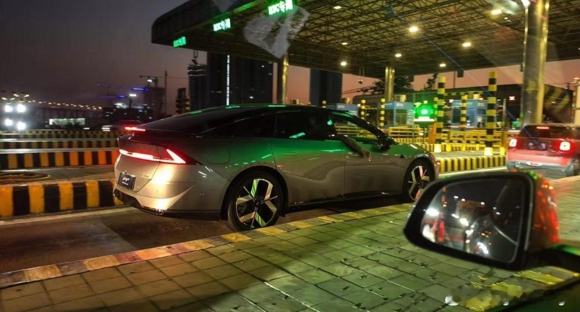 小鹏新P7+尾灯点亮效果原来上面半段是不亮的。战斗感更强了一些