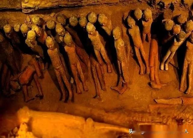 别以为殉葬就是乖乖躺好等死,那残忍程度远超想象! 最狠的是怕你挣扎破坏墓室,直接用大铁钉把人像挂画一样,活活钉死在墙上。更“体面”的毒酒,根本不是恩赐,只是让你死得“好看”——毒性发作后浑身麻痹,连挣扎的力气都没有,只能保持僵挺姿势,沦为墓主人地下宫殿的“摆件”。 最恐怖的,是被活生生关入墓室的人。墓门落锁的那一刻,光明彻底消失,人间炼狱就此开启。平日里的主仆尊卑全是狗屁,为了活命,人们抄起青铜器砸墙,指甲挠得血肉模糊,墓墙上没写完的划痕,大概率是没写完的“活”字。 吴王阖闾女儿墓的记载更骇人,惨叫声持续数日,从撞门嘶吼到指甲挠墙,最后归于死寂。食物耗尽后,饥饿会逼疯人,尸骨上的人类齿痕就是铁证。 哪有什么含笑九泉的追随,全是被逼无奈的绝望。考古挖出的哪里是财宝,分明是几千年前无名者拼尽全力的呐喊:我不想死!这血淋淋的殉葬制度,恰恰印证了封建专制的冷酷无情!