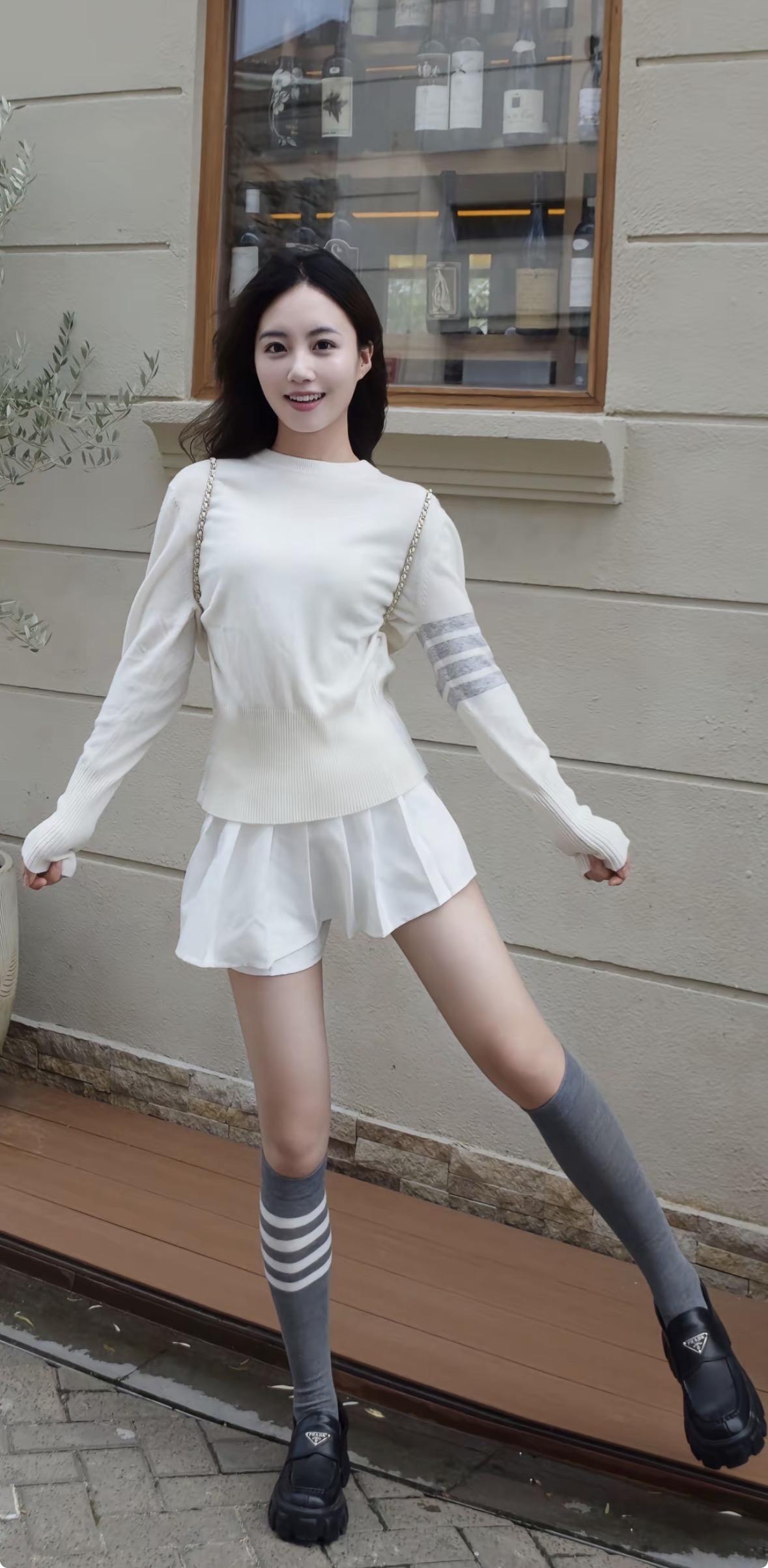 校园风穿搭指南:黑白格子裙+毛绒外套,青春减龄!🎒👟