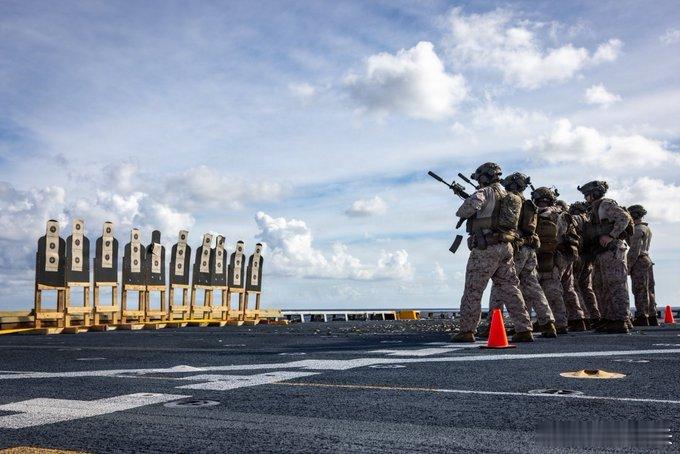 📍加勒比海 2025年11月25日,第22海军陆战队远征部队(特种作战能力)的 I 连(India Co)队员在“福特·劳德代尔”号船坞登陆舰上进行甲板实弹射击。热点观点海外新鲜事