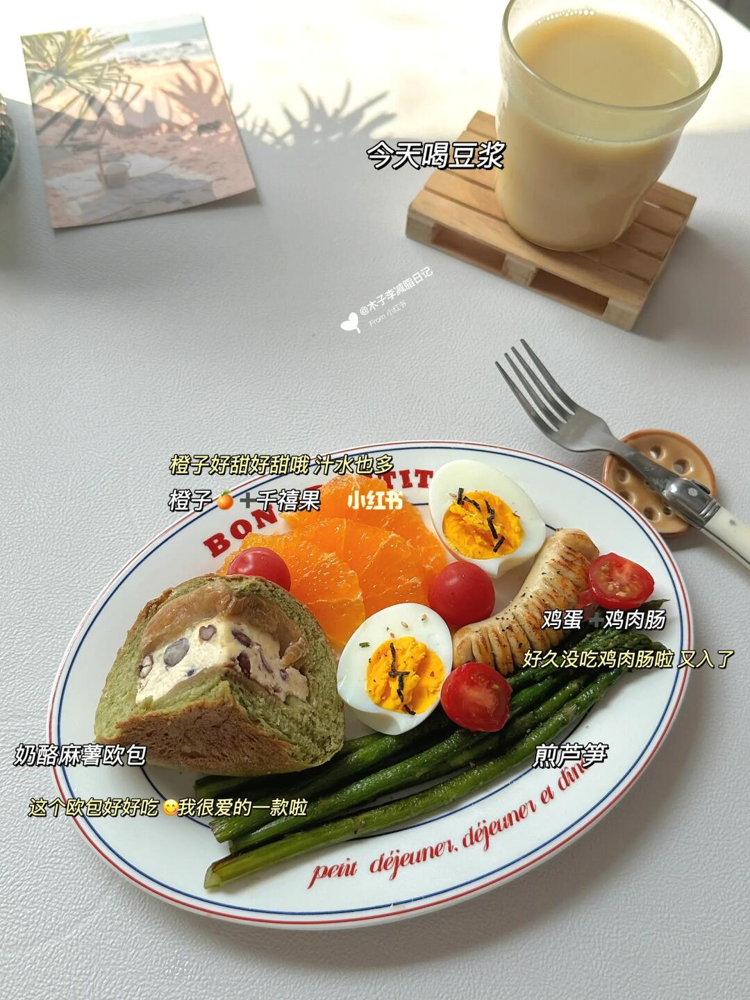 ▪️初始体重120斤 ▪️现重91.4斤 - 🥣早:奶酪麻薯欧包 | 煎芦笋 | 鸡肉肠 | 鸡蛋 | 橙子 | 豆浆 | 千禧果 🥣午:辣椒炒豆干 | 全麦饼 🥣晚:虾米冬瓜豆腐汤 🥣加:桂花糕 | 三明治 | 美式 🏋️运动:🈚 💧喝水2000ml - 📝好好吃饭,少熬夜,多喝水,多吃水果蔬菜!