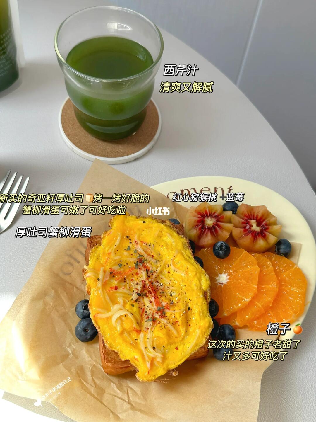 ▪️初始体重:120斤 ▪️已➖28斤 ▪️今日体重:🈚 …… 🥣早餐:西芹汁➕厚吐司蟹柳滑蛋➕猕猴桃🥝➕蓝莓➕橙子🍊 🥣午餐:糙米饭➕西红柿金针菇巴沙鱼 🥣晚餐:西红柿豆腐菠菜汤 🏋️运动:🈚 💧喝水2000ml …… 📝这个小假期一眨眼就结束了,宅家的每天想吃啥就吃啥,体重肯定也涨了(哈哈哈 回来还得自己做饭吃呀!把减脂提上日常呀~ 今天的早餐配了西芹汁,空腹先来一杯西芹汁清清肠,这是一款由天然西芹冷压萃取而成的饮品,完全不添加糖和水。每一口都是西芹本身的清新味道,不仅清洁肠胃,而且还有消水月中、改.善便秘、抗yan抗氧化等,长期坚持饮用西芹汁不仅可以改.善身体健康,还能quan面提升免yi 力。喜欢蔬果汁的姐妹可以试试~