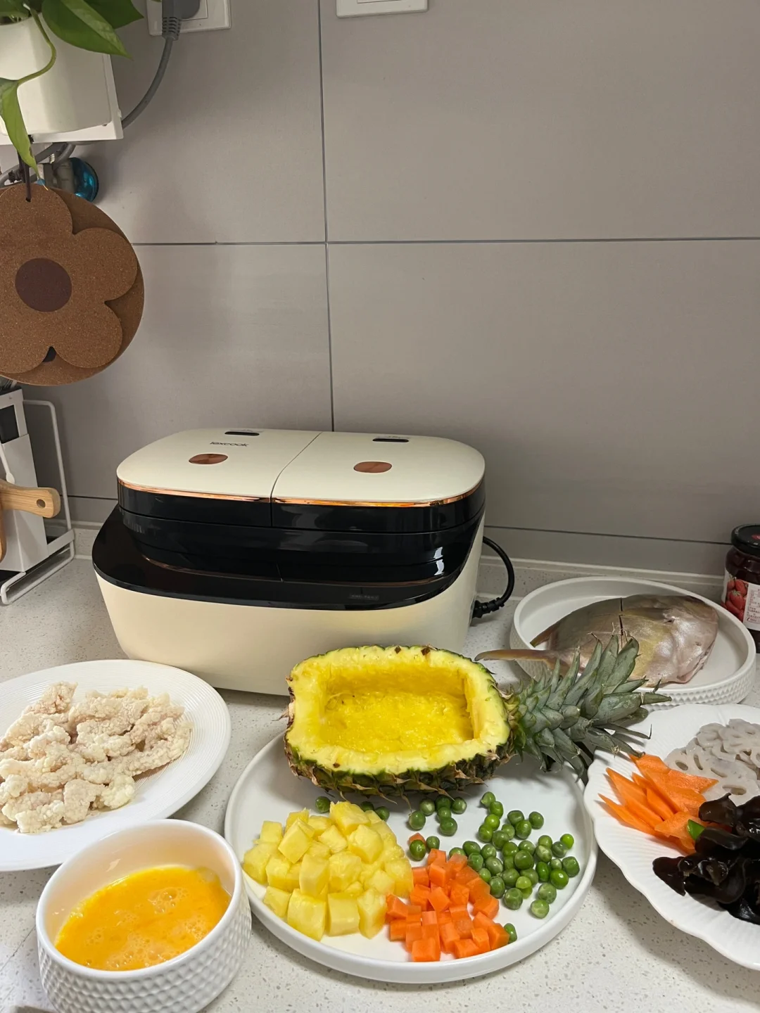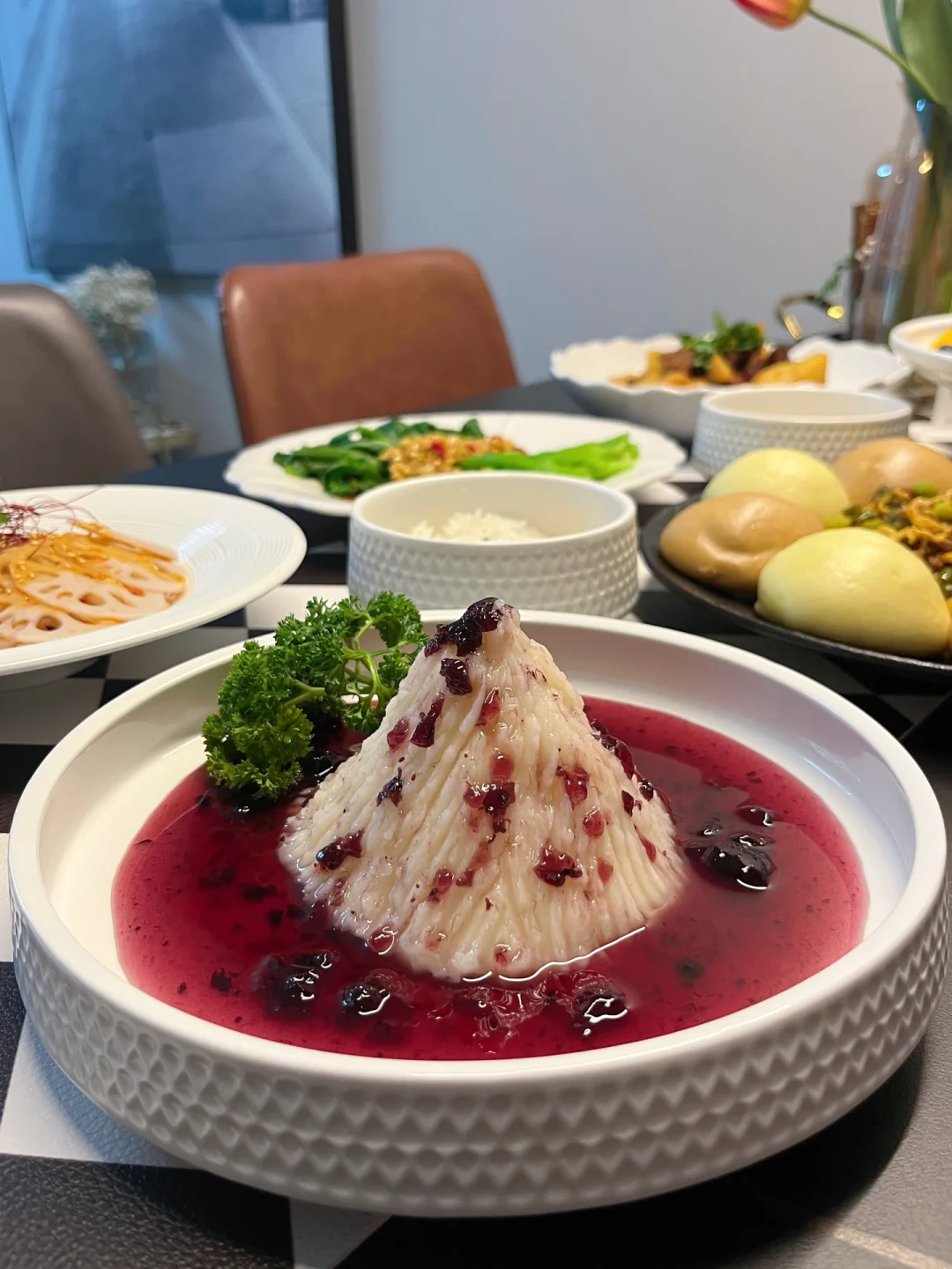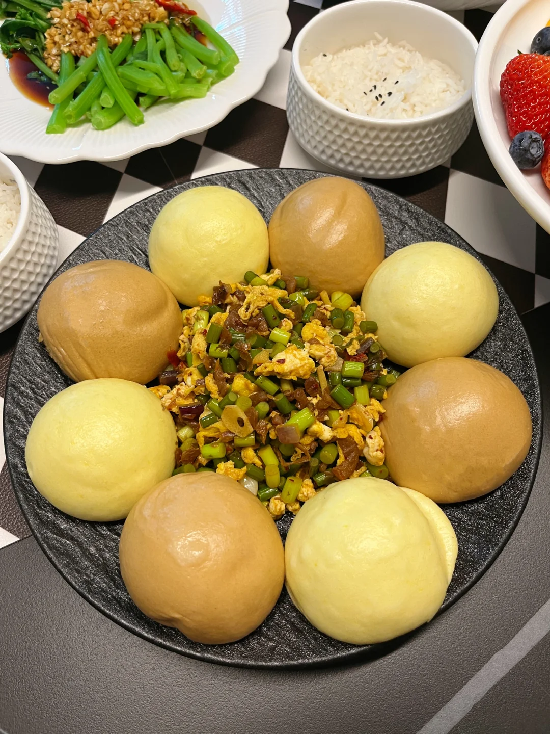 我相信对很多人来说,厨房都是承载幸福的地方,锅碗瓢盆的碰撞,柴米油盐的交融,系上我的小围裙为家人做一桌可口的家常菜,其乐融融的一顿晚餐,再治愈不过了…… 【今日菜单分享】 1️⃣蓝莓山药泥 2️⃣红烧土豆炖牛肉 3️⃣白灼菜心 4️⃣麻辣红油拌藕片 5️⃣外婆菜窝窝头 6️⃣主食:米饭,窝窝头 7️⃣水果:草莓,蓝莓,芒果 8️⃣饮料:柠檬茶,椰汁 【蓝莓山药】:我们全家人都喜欢吃的一道小甜品,酸酸甜甜很开胃,甜度也可以根据口味自己调节,喜欢甜一些的可以在山药泥里加炼乳,蓝莓酱里加蜂蜜~ 【外婆菜窝窝头】:塞满外婆菜的窝窝头,一口咬下去太满足了,窝窝头买的现成的,直接蒸熟就可以,当然单吃外婆菜配米饭也是巨下饭~ 【红烧土豆炖牛肉】:电饭煲做的软烂入味,两个小时做一大桌菜当然除了做饭熟练以外,好用的厨房小家电也是帮了我的大忙,这个双胆电饭煲,它能同时烹饪两道菜或者3道菜也没问题~蒸米饭的同时再炖个牛肉,不占用我的燃气灶炒其他菜,多个锅子同时做菜既节省时间又能同时出锅不担心隔得时间太久饭菜放凉的问题~