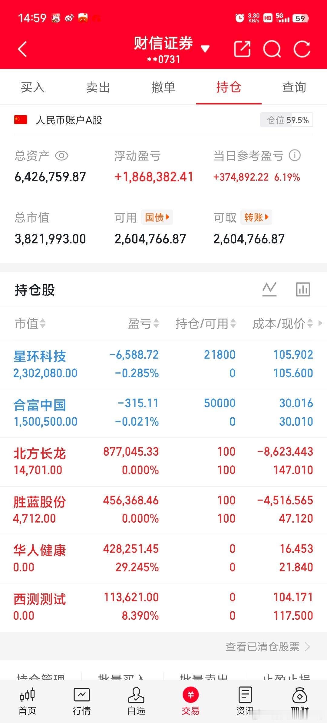 今天是12月18号星期四!(600w)翻倍操作之旅的第2天;欢迎粉丝朋友观察,盈利人生昨日早盘新上车$华人健康 sz301408$今日冲高回落最高摸了一下板,卖不到最高点,吃肉29点出局啦,西测测试止盈出局午后尾盘新建仓合富中国,星环科技特别声明:我开实盘的目的主要是为了记录我对A股走势的思考和研判,并用于记录我自己的操作笔记,是我积累股票投资知识和反省操作失误的一个平台,绝不是读者朋友买卖股票的依据和理由,不具备投资建议,据此操作,需自行承担投资后果,股市有风险,投资需谨慎!!!看到的朋友点个赞,扣一波“888”支持,我会每天坚持发出自己的操作来!兄弟们,点赞富三代,评论美一生!!
