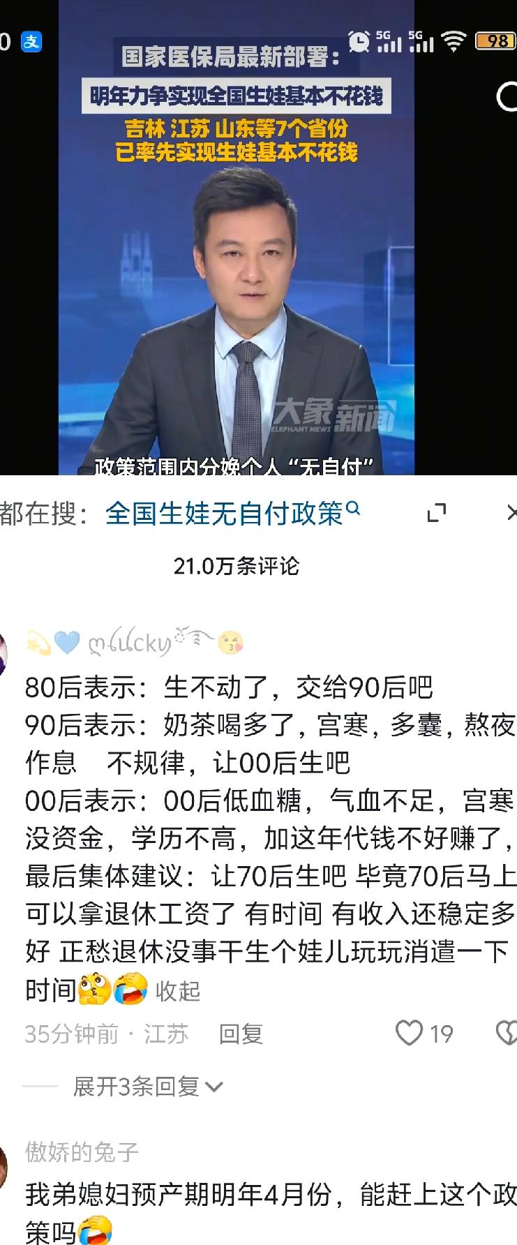生育问题的代际交接: 80后说“生不动了,交给90后。” 90后说“奶茶喝多了,宫寒,作息不规律,还是让00后生吧。” 00后说“我们没有资金,没有学历,气血不足,身体不好,经常低血糖,血糖不稳。 还是让70后生吧,70快退休了,有时间,有收入,生个孩子也不亏。” 你觉得哪个代际最应该生育呢?