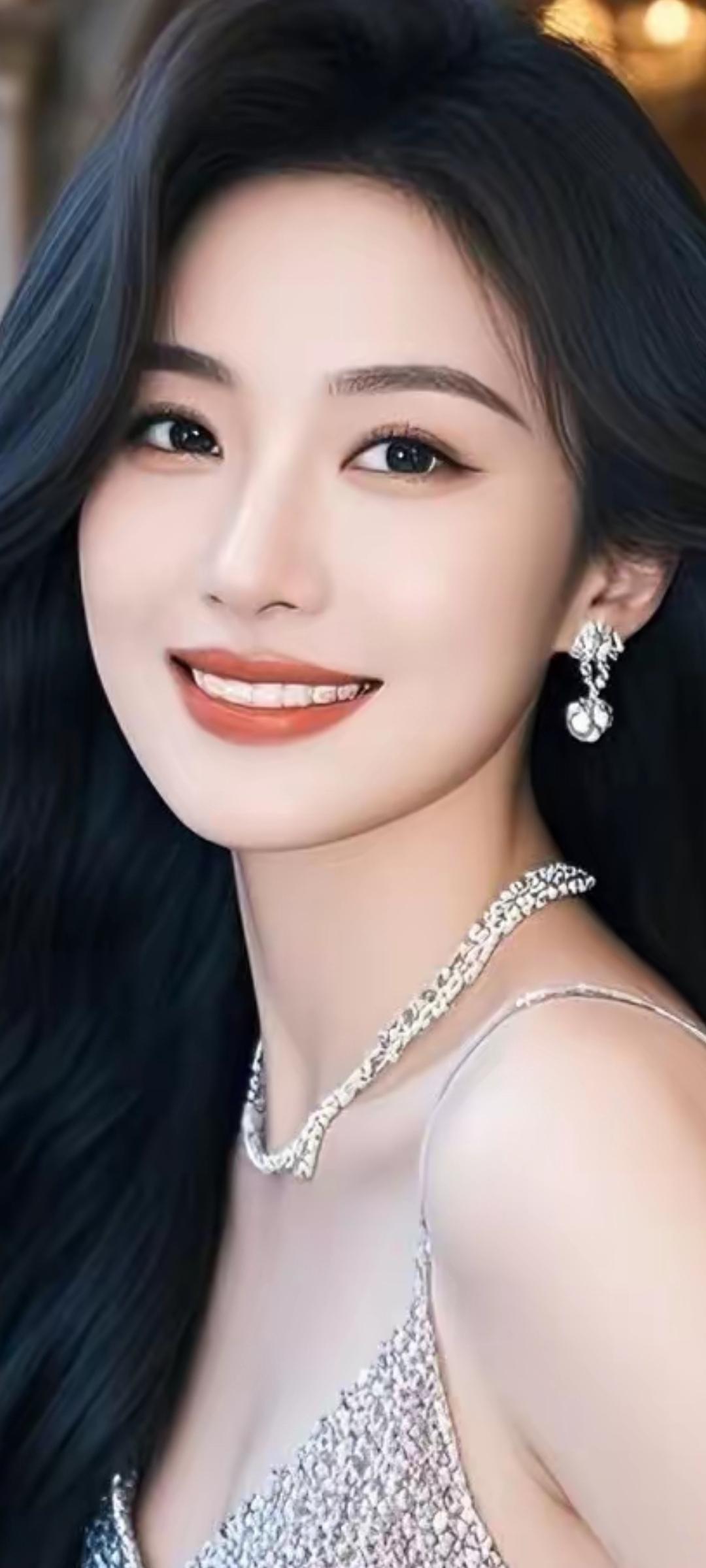 甜美笑容,黑发飘逸,闪耀耳环,女神范儿十足!😍✨