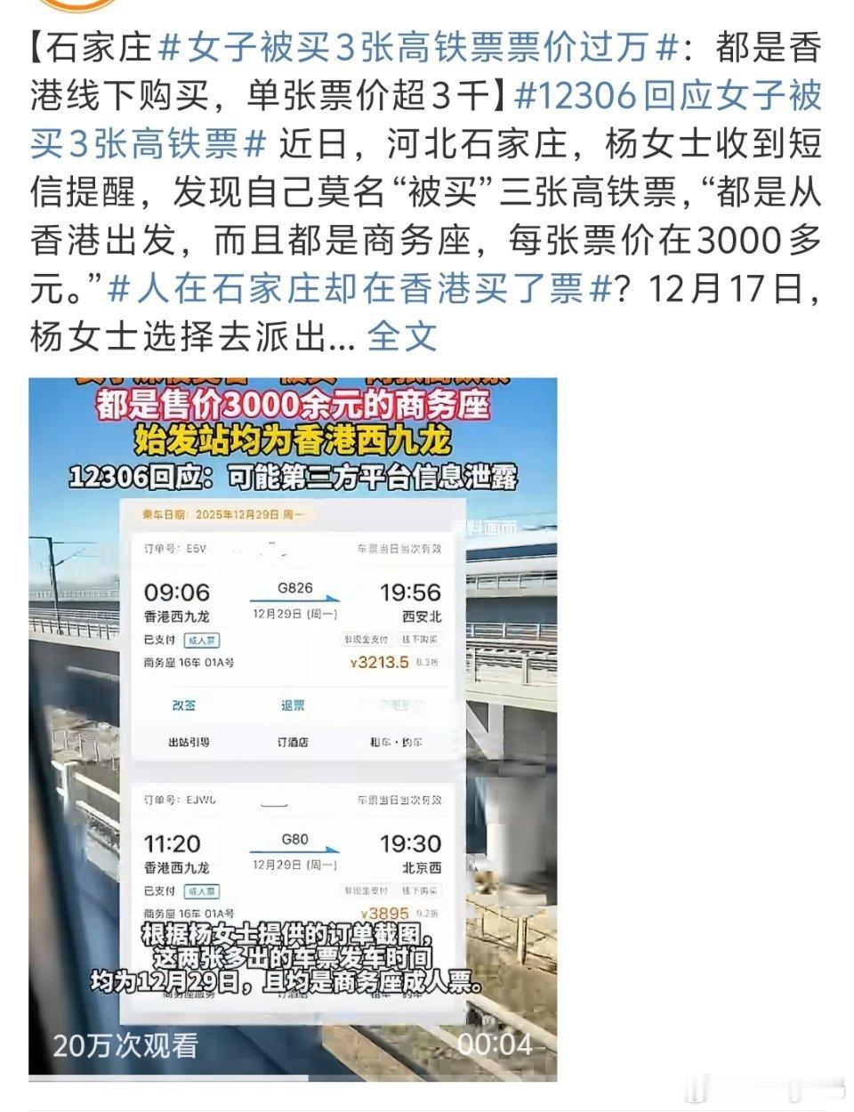 女子被买3张高铁票票价过万虽说第三方不安全但凡过节过年高铁票好抢一点都不至于用第三方