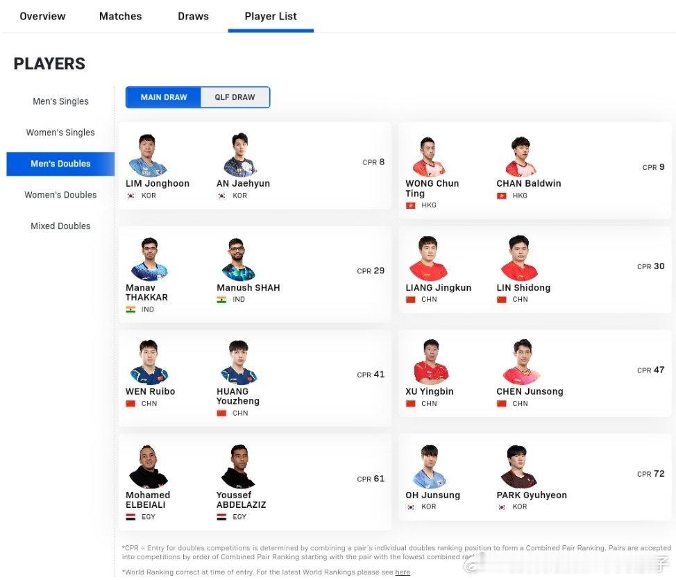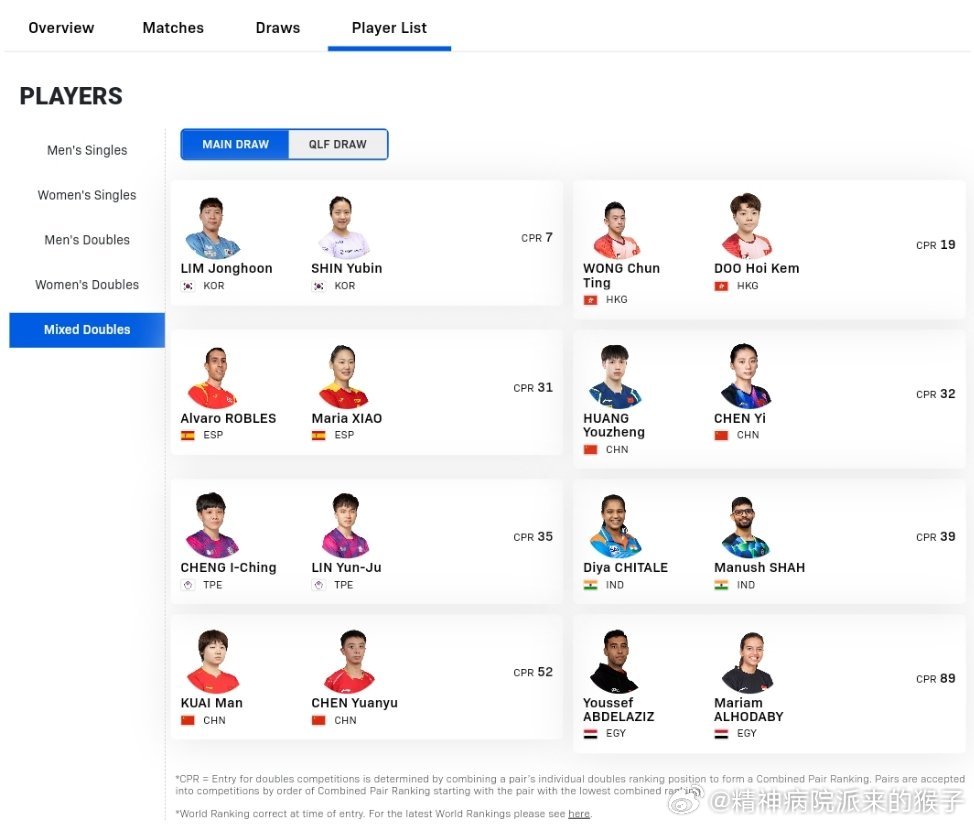 2026WTT多哈球星挑战赛中国队双打报名:1月13日-18日混双正赛:黄友政陈熠、陈垣宇蒯曼女双正赛:石洵瑶王晓彤、覃予萱纵歌曼、陈熠蒯曼男双正赛:梁靖崑林诗栋、温瑞博黄友政、徐瑛彬陈俊菘