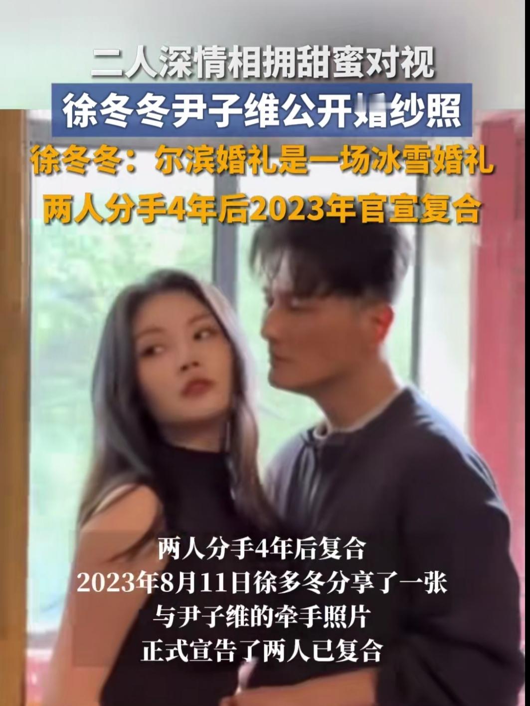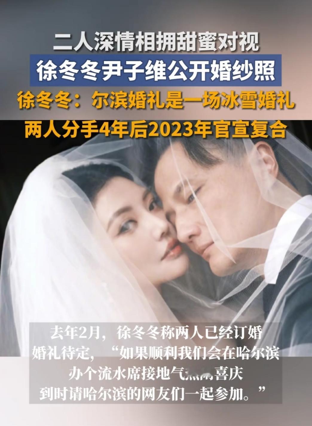 刷到徐冬冬和尹子维的婚纱照时,突然就懂了:好的爱情从不是轰轰烈烈,而是兜兜转转后,依然愿意把余生交给彼此。 谁能想到这对曾经分合两次的情侣,最终还是选择了相守?当年两人官宣分手时,多少人感慨“成年人的爱情终究抵不过现实”,可他们没纠缠、没互撕,只是安静退出彼此的生活。直到这次婚纱照曝光,照片里没有奢华布景,徐冬冬穿着简约婚纱,尹子维温柔牵着手,眼里的笑意藏都藏不住。 他们说要去哈尔滨办冰雪婚礼,还要加小型演出,不搞复杂流程。突然觉得,爱情最好的样子,就是经历过试探、分开的遗憾后,依然能坚定地走向对方。我们总在羡慕别人的爱情一帆风顺,却忘了那些兜兜转转的重逢,才更懂珍惜。 生活里哪有那么多天生契合,更多的是愿意为对方妥协、为感情坚持。就像徐冬冬和尹子维,走过低谷,熬过误解,最终把爱意藏进细水长流的日子里。这样的爱情,才真的让人觉得踏实又温暖。