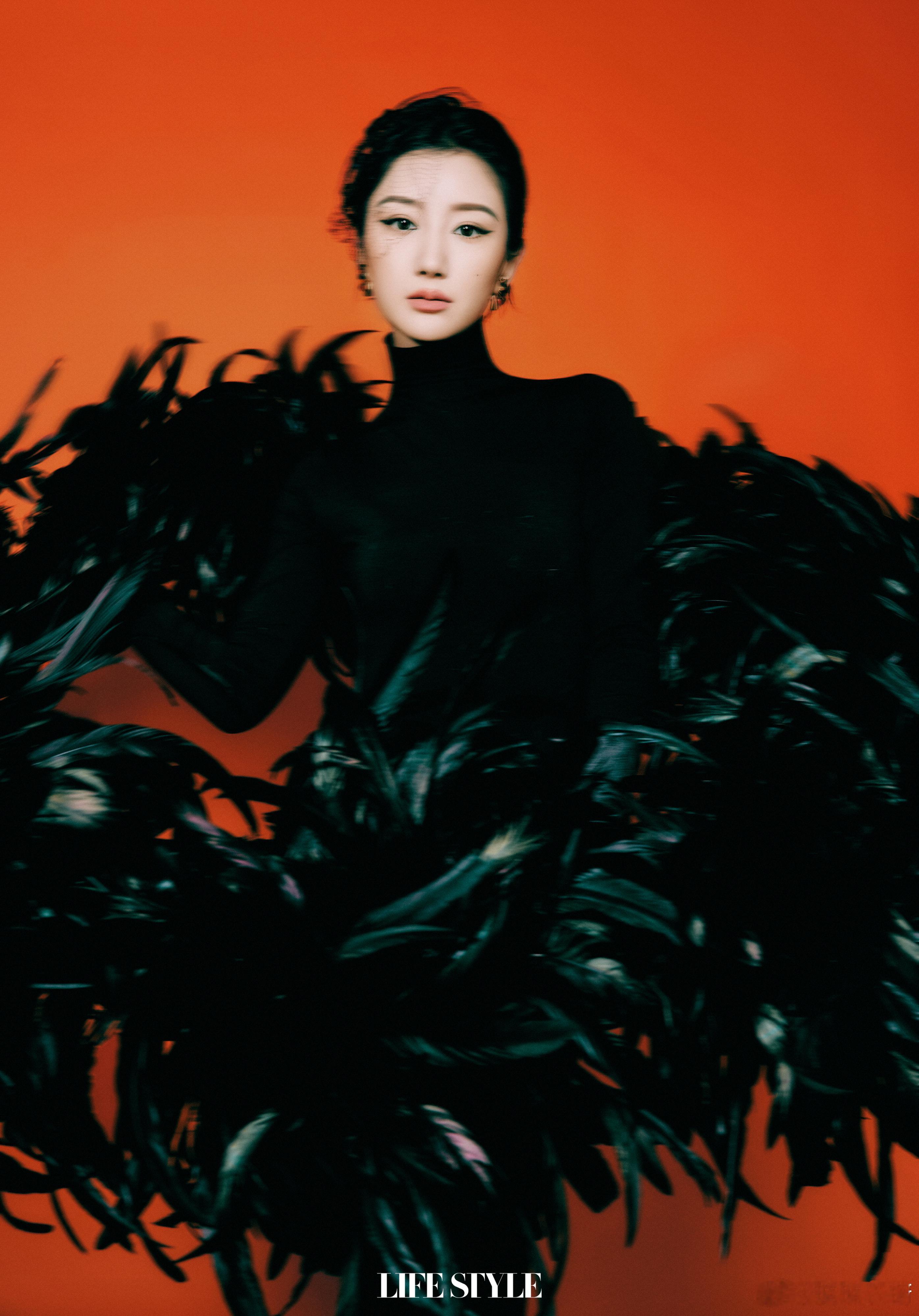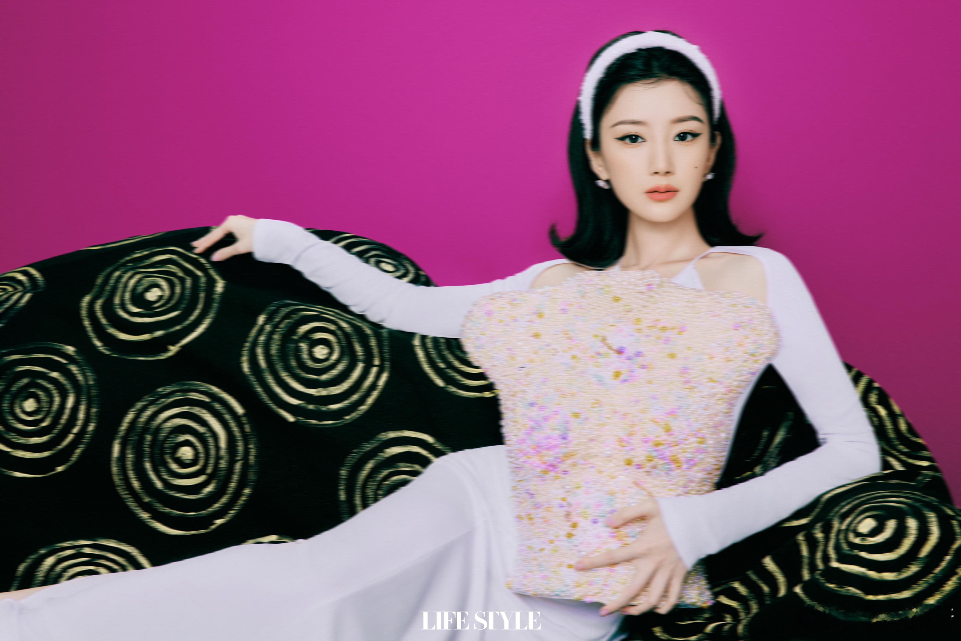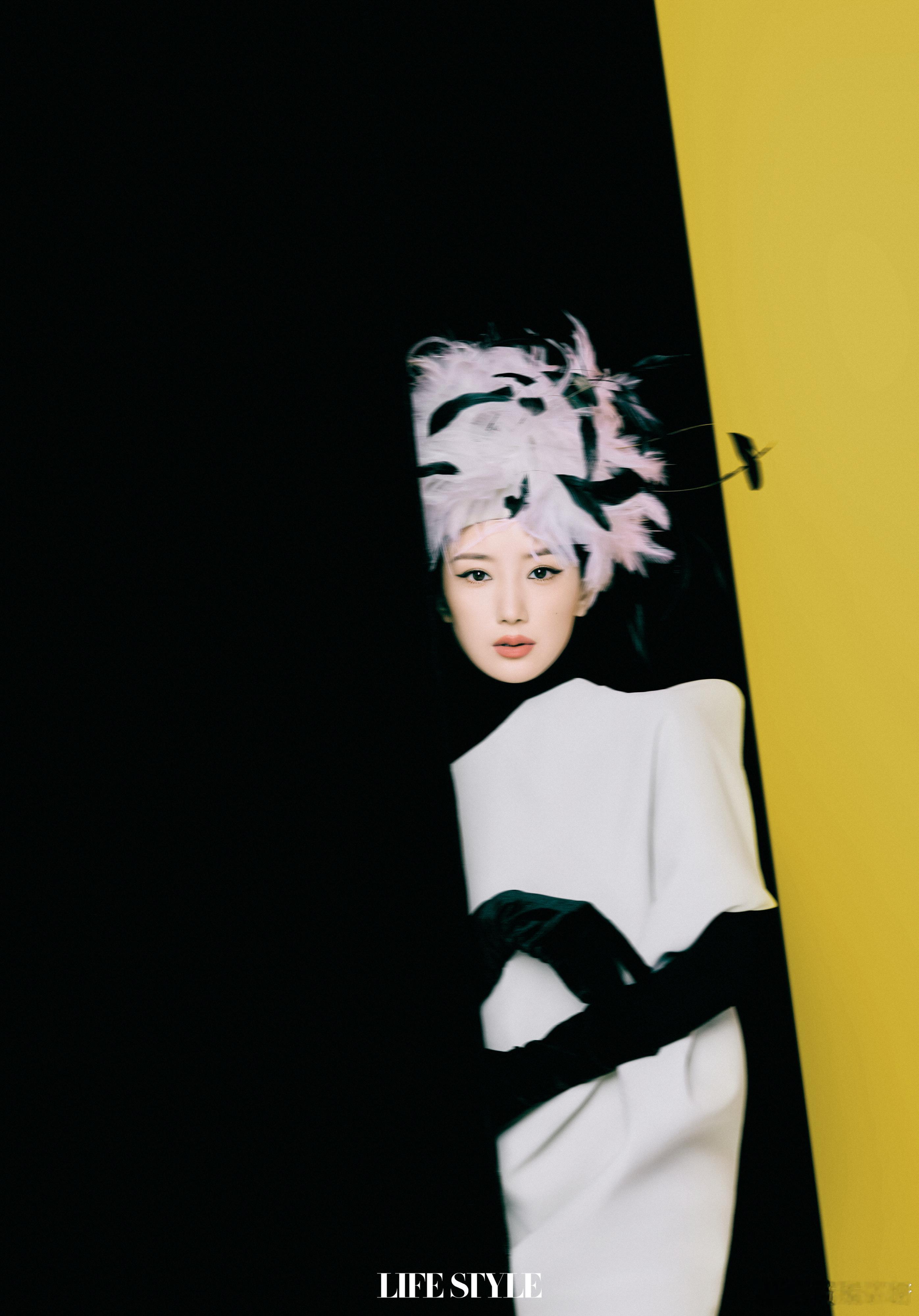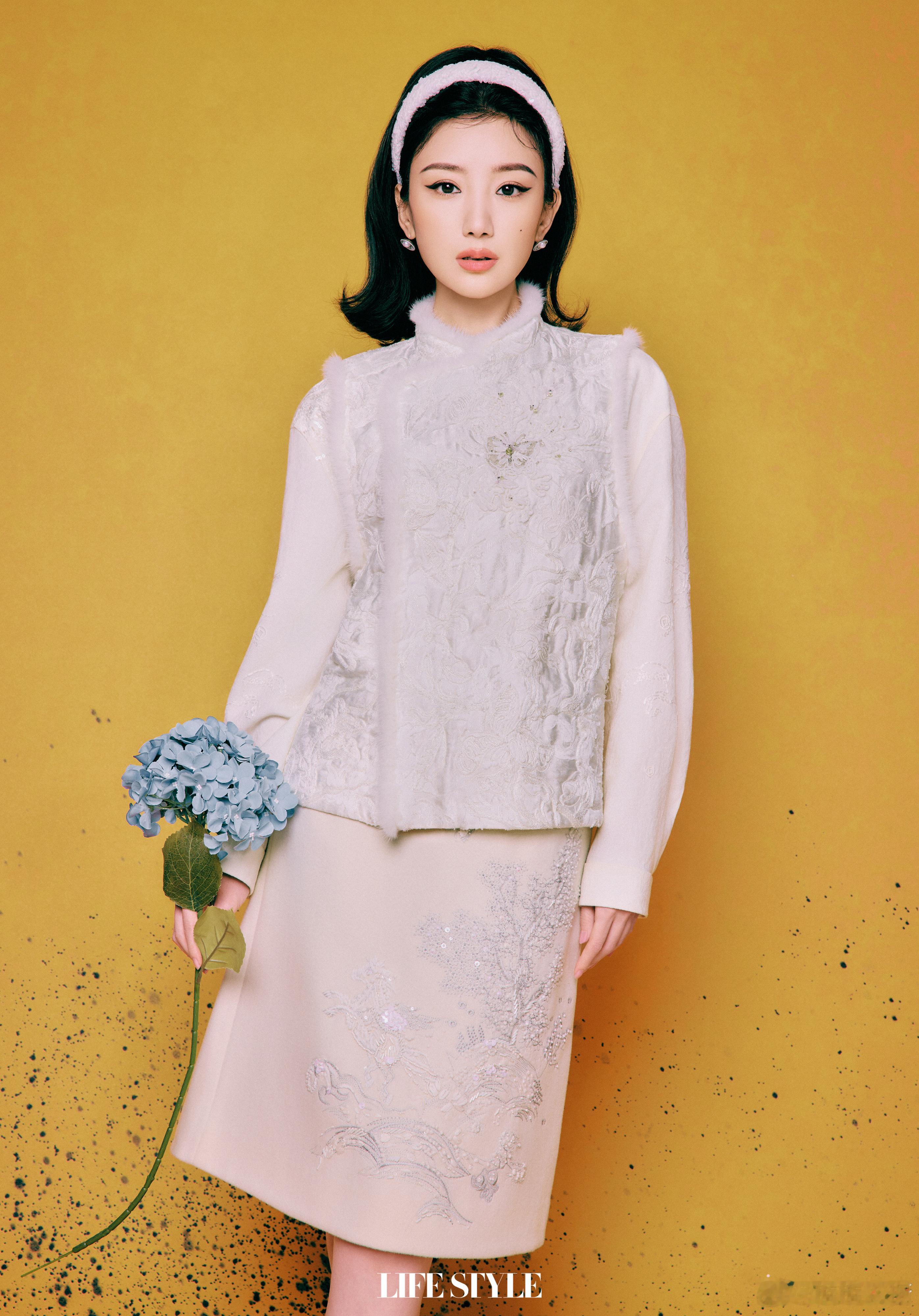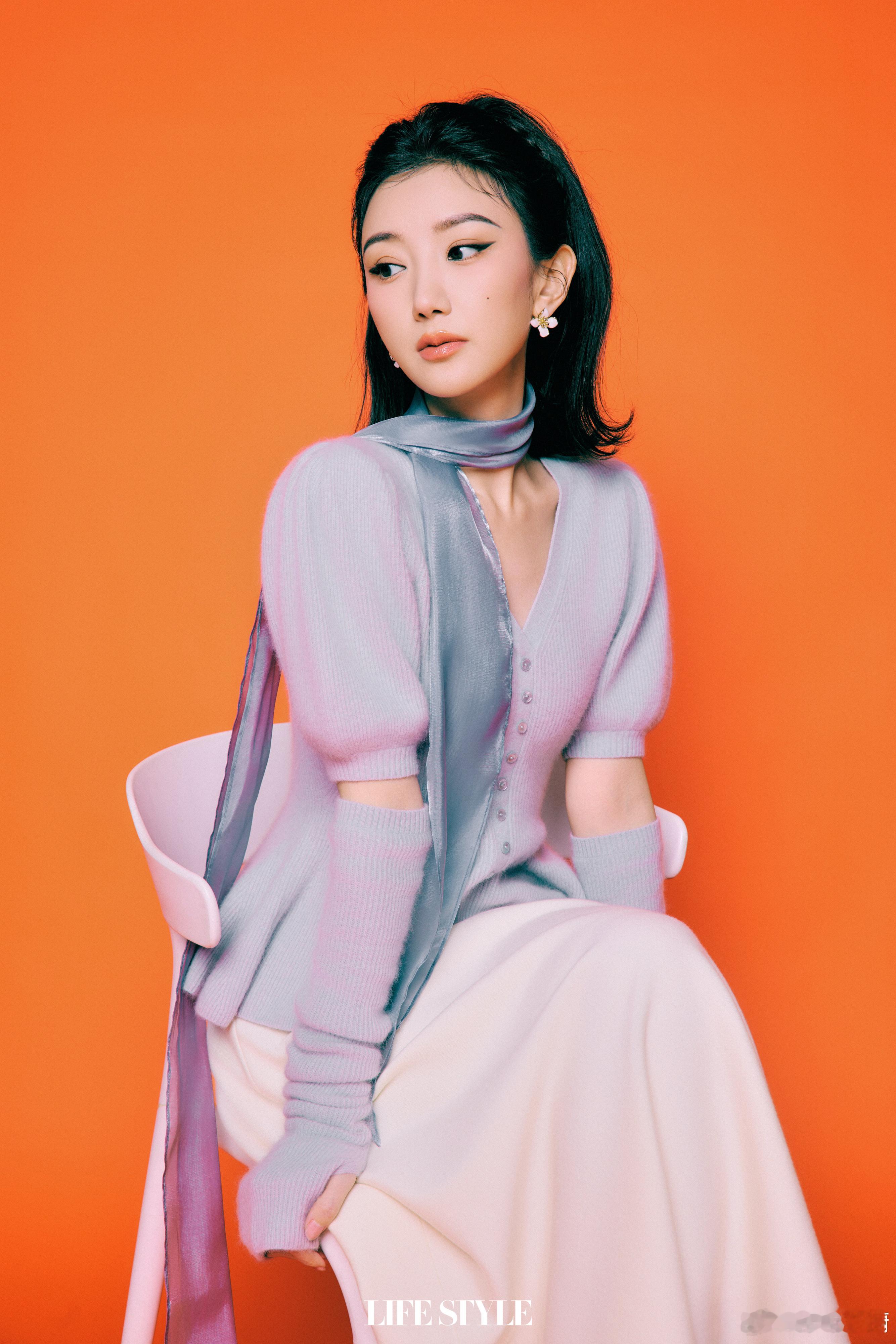 毛晓彤精品购物指南封面毛晓彤像是从画中走出的摩登女郎撞色背景下的灵动身影,每一套造型都像打翻了调色盘!羽毛头饰配侧颜杀,温柔与酷飒完美融合手捧花束的优雅坐姿,是行走的时尚画报没错了。时尚大片