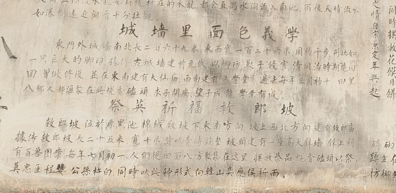 赵氏孤儿的故事在黄河西岸形成了一种九郎文化,韩城市曾经遍地九郎庙。合阳县西关原来也有九郎庙,黑池镇有救郎庙还有救郎披。我根据黑水池边的八景介绍人,来到救郎坡,向几位当地大哥请教,竟然不知救郎坡,也不知救郎庙。 韩城市的九郎庙由救郎庙而来,但黑池还保留了救郎庙的名称。一位老者告诉我,这座古楼是救郎庙遗存,也有人称其救郎庙,还介绍我去找当地一位专家,时间有点紧没去请教。记载的救郎坡石条路己被公路代替,这和韩城市的九郎庙一样,慢慢被人忘记。但赵氏孤儿故事在河西影响很大,奕应侯赵文子是河西先民祈雨的神灵,被广泛供奉。