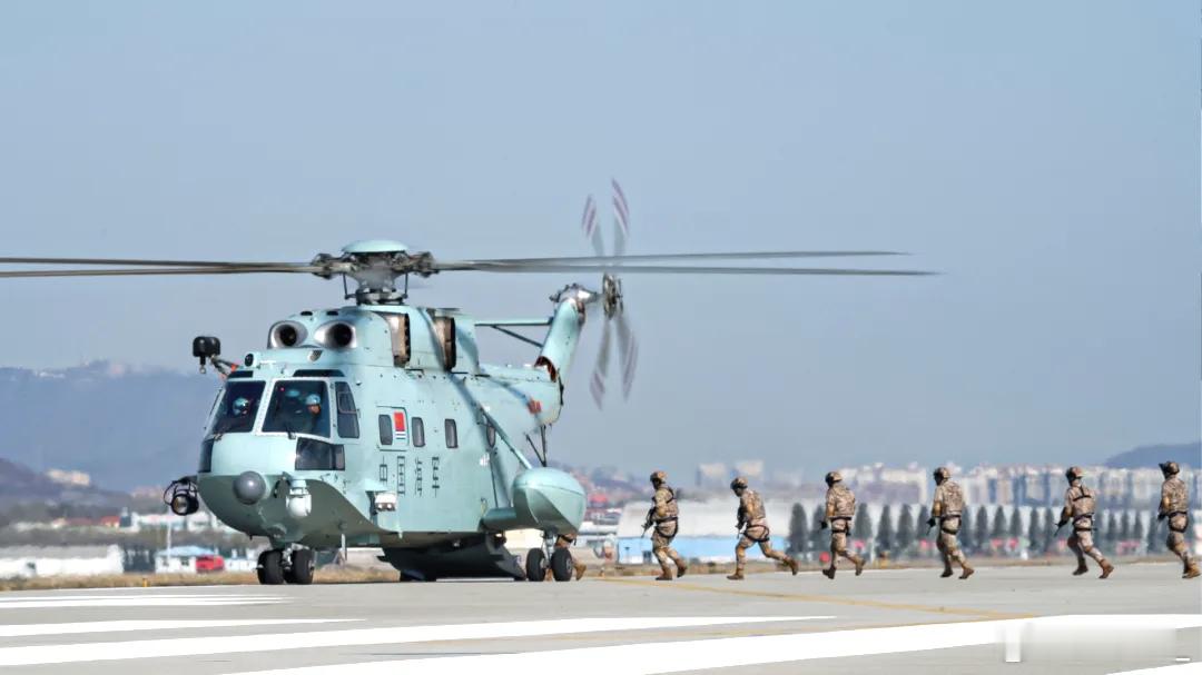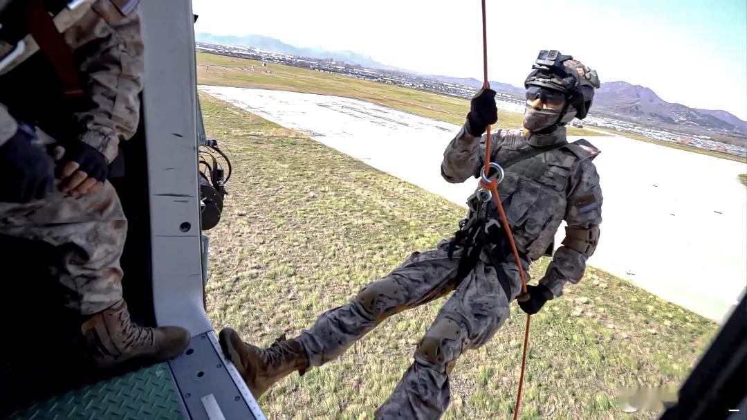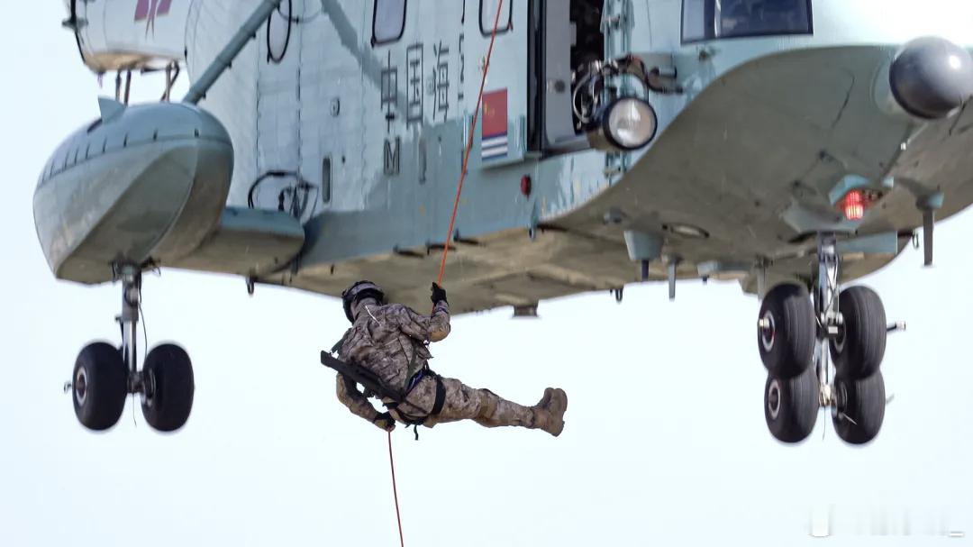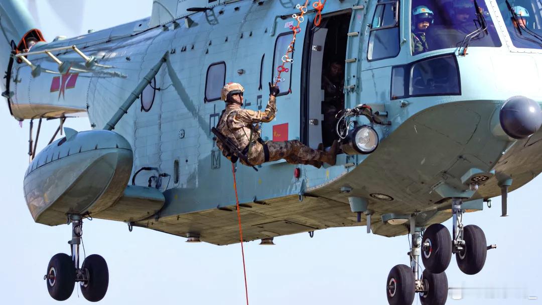海航大某团与某训练基地联合举行直升机滑降突击训练