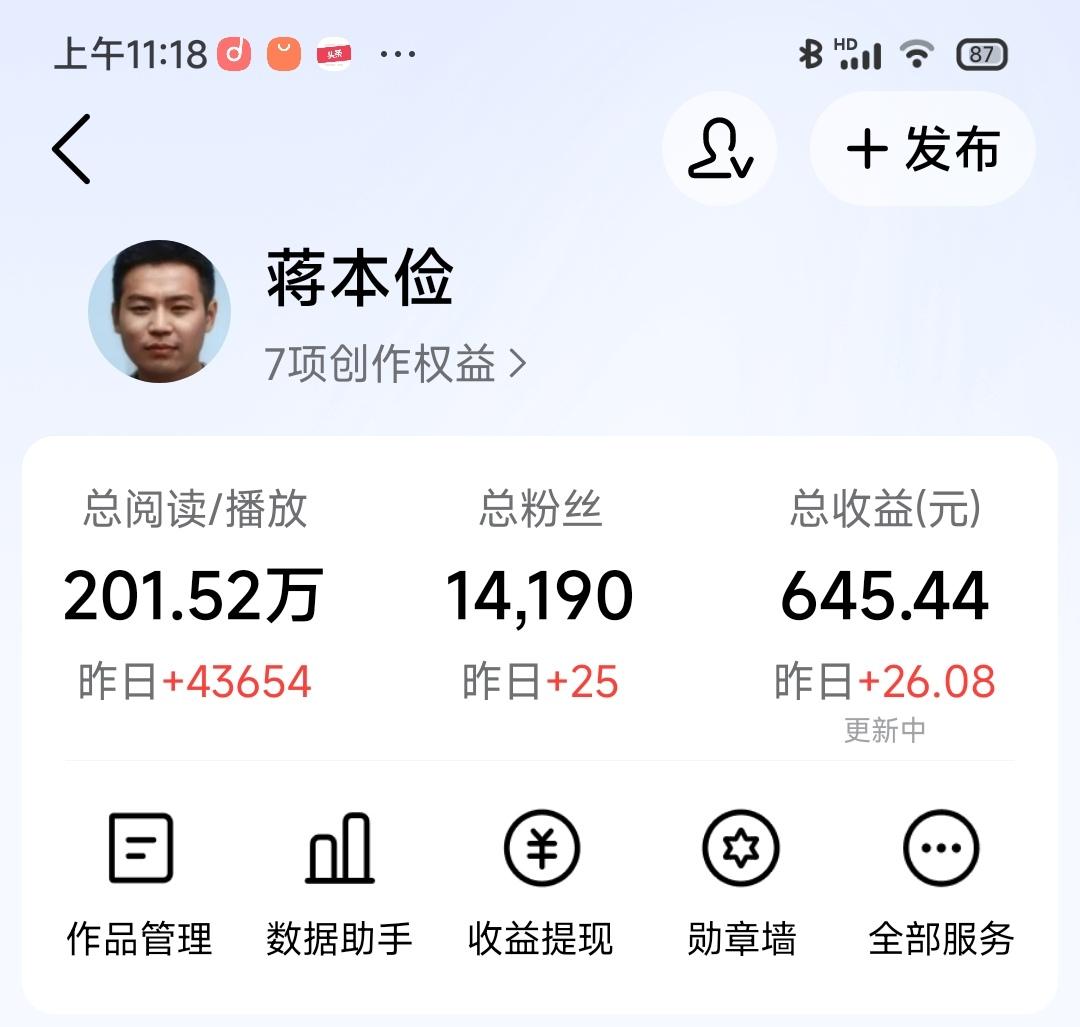 昨天有所好转,头条作品阅读量4万,收入26元。写着写着有些疲惫。