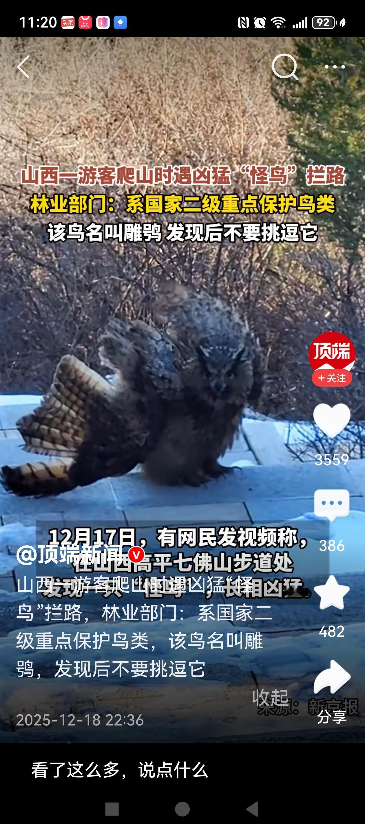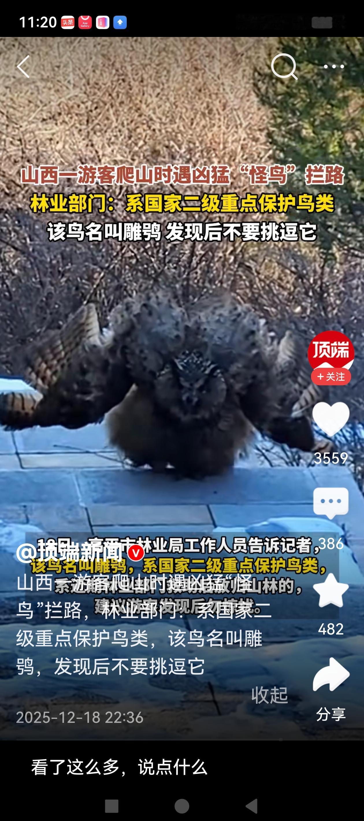 偶遇野生动物最好是绕开它,只要是不故意挑逗它,一般的动物是不会主动对人发起攻击的。就怕好奇心重,主动靠近观察或拍照,动物会误认为受到攻击。 随着生态环境的持续改善,越来越多的濒危物种中群开始恢复,人与自然、人员动物的和谐相处就显得尤为重要。