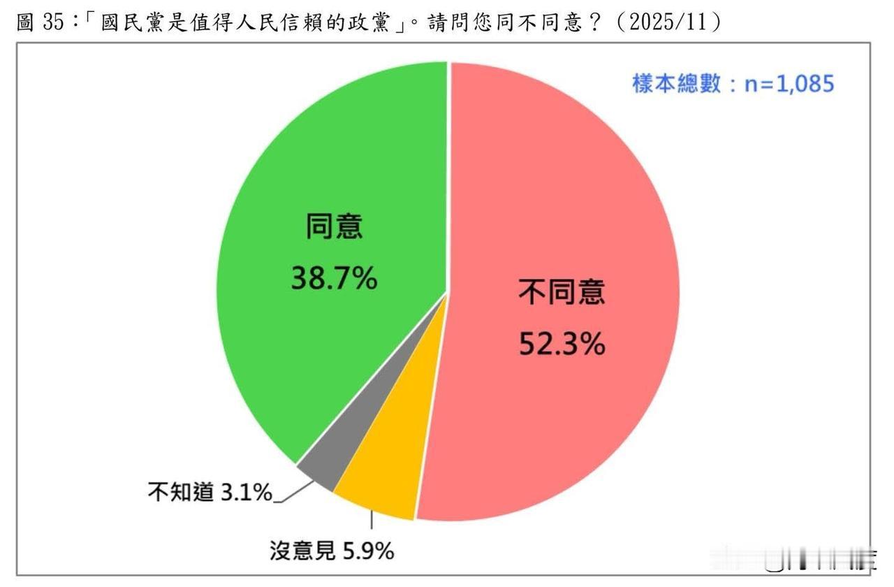 赖清德、卓荣泰胡作非为,民意反弹的山呼海啸来袭,最新民调溃败,事实上游盈隆隐瞒了一个重大危机! 深绿民调机构台湾民意基金会今日发布一份关于卓荣泰不副署财划法,你是否赞成的民意调查。结果显示,25.5%非常支持,13.7%还算支持,18%不太支持,24.8%一点也不支持,9.1%没意见,8.9%不知道、拒答。赞成累计42.8%,不赞成累计39.2%。 台湾民意基金会是一家彻头彻尾,浑身每个毛孔和每寸皮肤都充满着绿血的民进党头号侧翼组织。董事长游盈隆,虽不定期也受邀上中天赚一点通告费说一些面子上的话,但由于其本人的深绿背景和“台独”意识,骨子里对国民党有着销魂蚀骨般的仇恨,虽然经常以假中立面貌出现。 台湾民意基金这组织就是为黑国民而生的,他的脸书是长年累月,几乎每隔一两日就抛出一份民调,几乎所有民调的指向都对国民党不利。 如11月份该机构一口气推出11份民调,其中包括是否认同国民党清廉,结果你猜游盈隆弄出什么结果?64%不同意国民党清廉。国民党下野都已经十年了,国民党想不清廉也无处下口,党产全被抄,负债20多亿。民进党执政十年,弊案丛生,竟然还有64%认为国民党不清廉,这是什么狗屁民调? 比如另一份民调,问国民党是代表一般老百姓利益的政党吗?答案竟为53%不同意。再如12月份一份民调,问国民党是有执政能力政党吗,结果 55.2%不同意。接着又一份民调,国民党是否值得人民信赖,最后52.3%不同意。 上述民调到底是真民调,还是游盈隆坐在家里想当然,今天想一个题目就随手划一个比例图发布出去?这个不要去用脑袋想,就能知道答案,台湾民意基金会的民调随意离谱到何种程度! 不过这个游盈隆擅玩障眼法,如他同时发布好几份民调,为了突显他最想传达的对国民党不利的民调,他会把对国民党最不利的民调放大,同时做一份对民进党稍有不利的无前紧要的民调来平衡。 如这次他把不同意卓荣不副署财划法的民调做到不同意比同意只多约3个多百分点,但是把停止公教退抚年金的民调做到,不同意停砍达47.6%,同意停砍的仅有35.5%。你看这家货多诡。但关键是蓝绿媒还喜欢引用这些民调,形成二次传播。所以岛内某些蓝媒、名嘴的智商也确实堪忧。 即使有的民调对民进党不利,那也是实在没办法,将对民进党不利的民调起码再上浮10个百分点还是不利,那也只好发布,但发布的对民进党不利的民调,真实结果起码要在发布的民调基础上对民进不利的再扣掉10个百分点,同时对另一方的结果起码再加上10个百分点,才勉强客观真实。 就拿不副署财划法民调来看,虽然不赞成卓荣泰高于赞成者,但两者差距较小。于是游盈隆借机放话,对于是否副署财划法,台湾民众意见高度分裂。但事实果真如此吗,实际上台湾民众对赖清德、卓荣泰不副署财划法已高度不满。 按照上述分析,赞成者起码要下调10个百分,即赞成卓荣不副署大概仅有29.2%甚至更低,赞成的起码有52.8%。所以台湾社会绝不能被游盈隆这个头号文化青鸟所忽悠。 而且这个台湾民意基金会官方脸书粉丝仅6千余人,每份民调发布后的浏览量少得可怜,点赞、留言数从不超过两位数,早已失去公信力。但蓝绿媒体经常有选择性的进行二次报道,形成二次传播,才扩大了游盈隆的影响力,否则他能算个屁? 不过即使从经过操弄后的民调结果来看,台湾民众已经越来越不满赖清德、卓荣泰的 胡作非为。民怨正在累积,只待喷薄而出的临界点加速到来。国民党要密切关注社会氛围的积极变化,适时出手,直掏民进党当局的命门,形成绝对的摧枯拉朽之势,而最好的检验场就2026中期选举! (发几张民调图,看这个机构民调机构的公信力有多烂!)