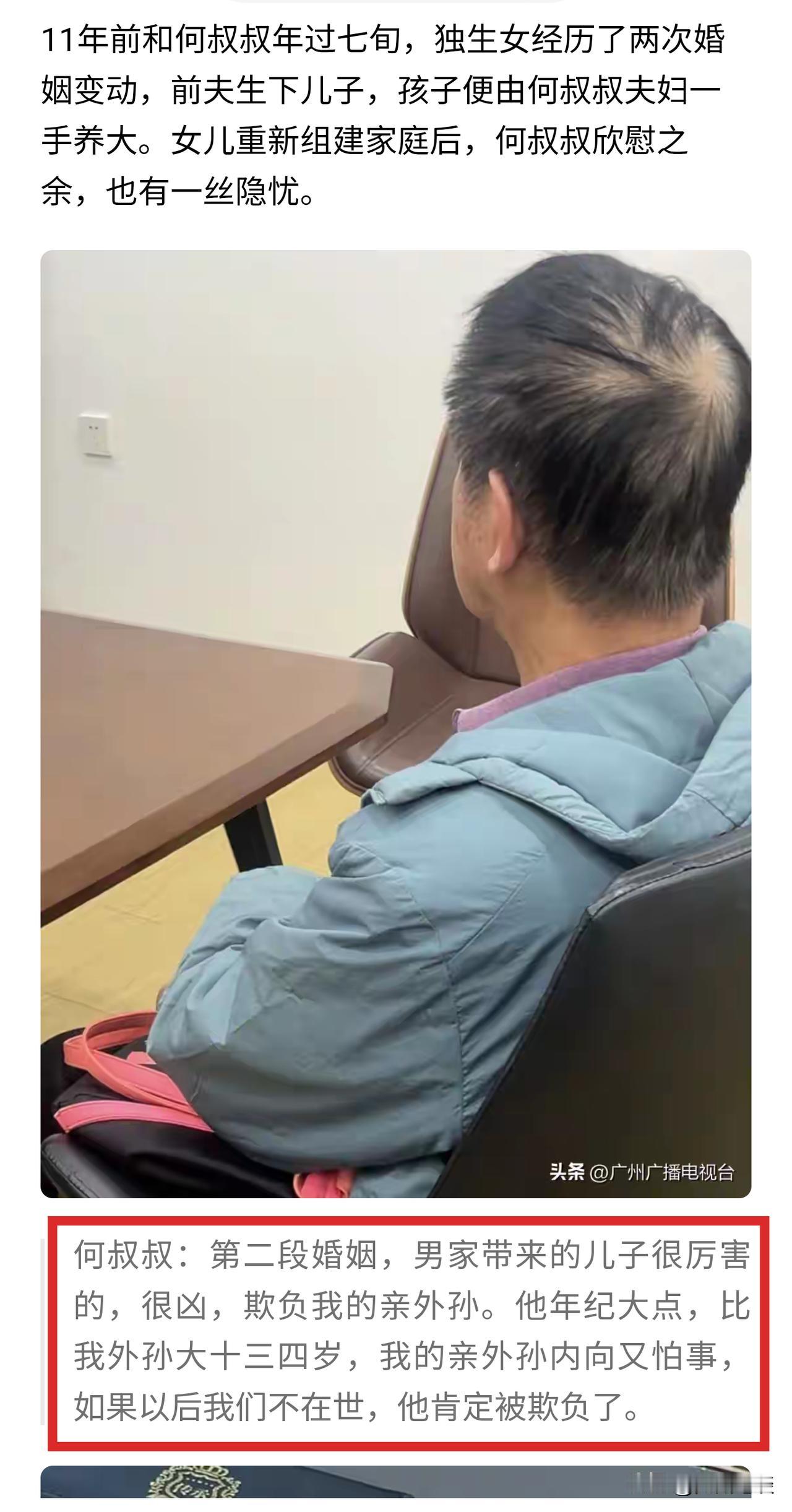 女儿再婚嫁给带男娃的强势男人,自己儿子被欺负! 广州七旬老人担心12岁外孙子将来