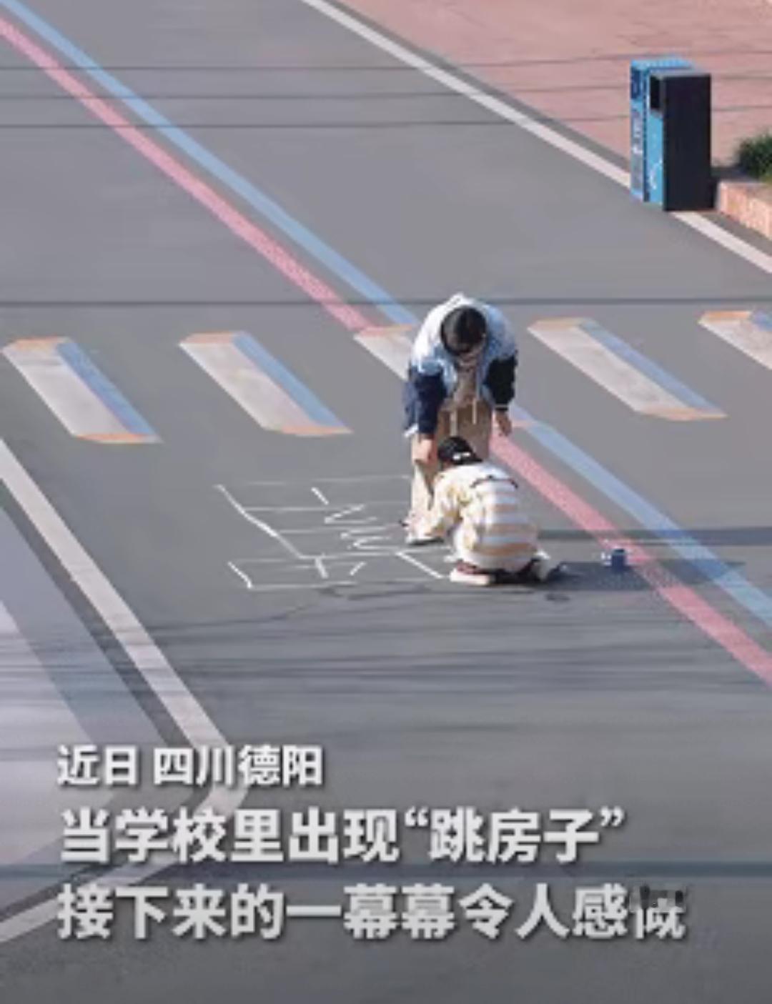 别小看德阳高中那幅粉笔画!它哪是什么跳房子游戏,分明是一把捅进成年人心里的“时光钥匙”! 两个女生随手一画,竟让整个校园集体“穿越”。男生跳得行云流水,是少年人的肆意张扬;保安大叔偷偷跳完抿嘴笑,是藏不住的童年悸动;老师慢慢踩过格子驻足回望,是被生活压弯的诗意瞬间。就连脚步匆匆的割草工,也忍不住回头多看两眼。 这地上的格子从不是规则,是我们回不去的旧时光。现在的孩子抱着手机,再也不懂一颗石子、一块空地的快乐。原来困住我们的从不是年龄,是被偷走的闲暇和勇气。 你小时候最爱蹲在地上玩的游戏是什么?
