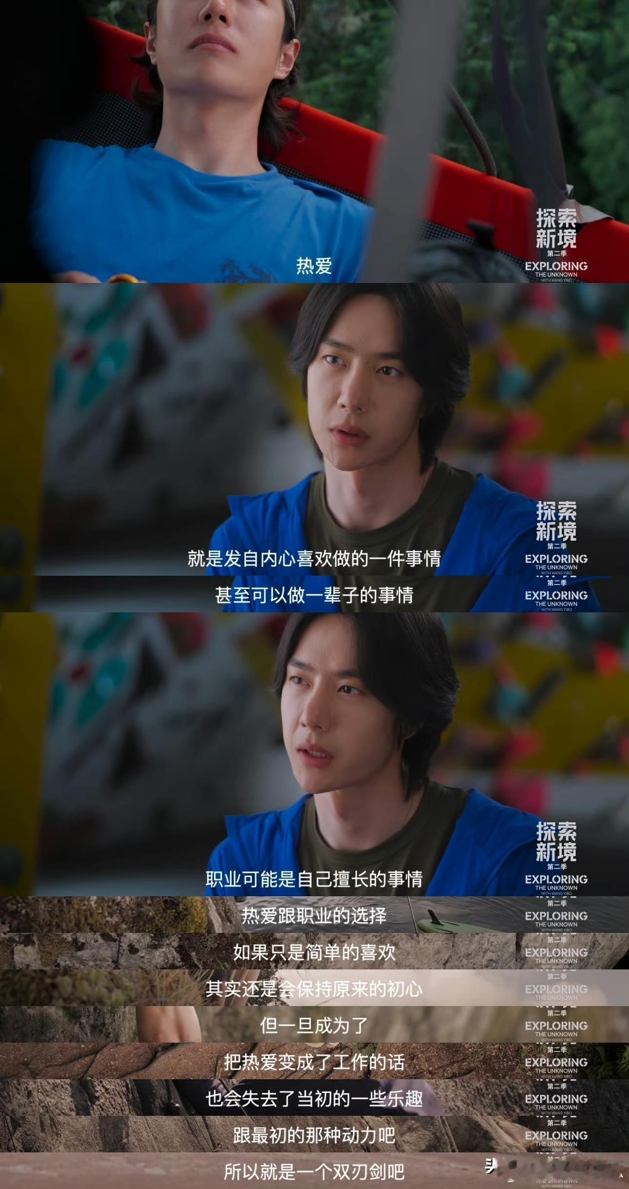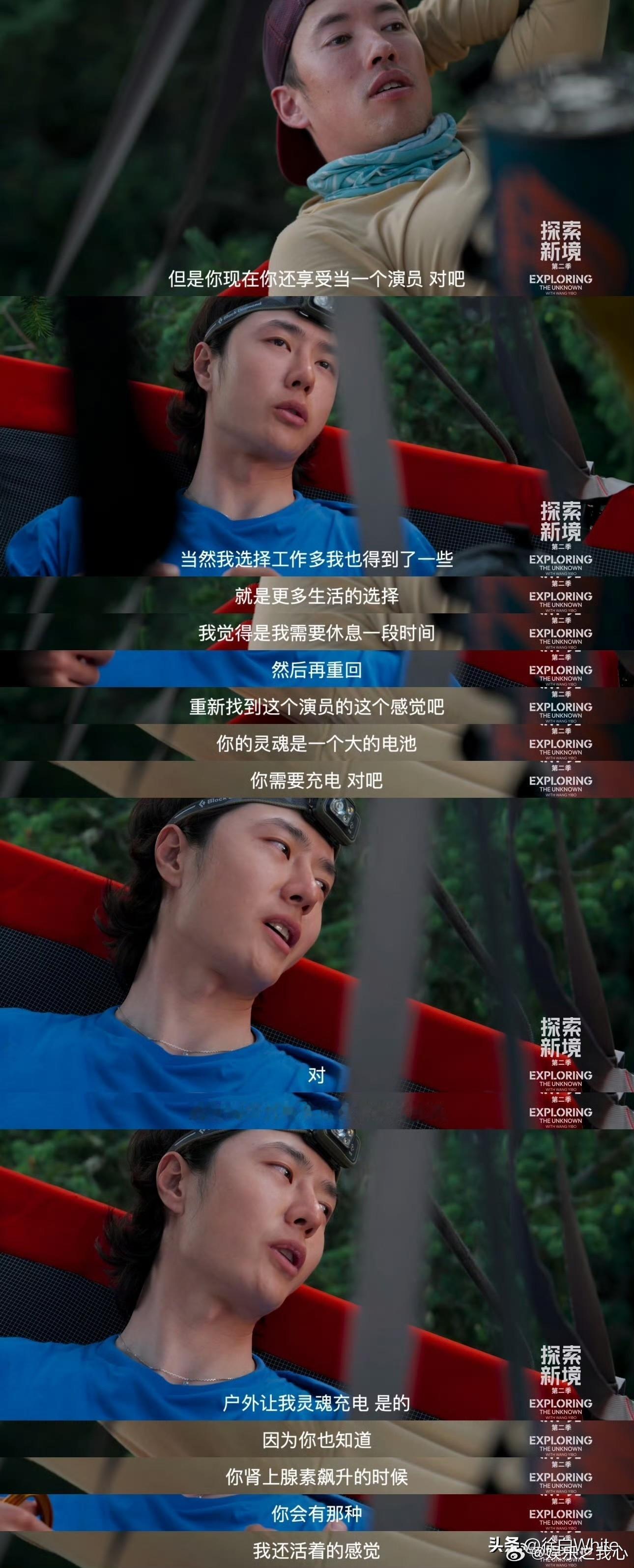 12月19日,王一博坦白对拍戏的想法,解释为什么这两年没有进组,选择去户外冒险!感觉深处大自然中的王一博,说的每一句话都非常走心,可能是身心处于一个比较放松的状态,才会让他如此坦白自己的所思所想!王一博说从没有想过把跳舞这个爱好作为工作生计的一部分,他想要继续做演员,但是他目前电池没电了,需要充电,才能重新回到剧组拍戏,他在努力平衡自己的电池电量两季探险下来,我觉得王一博也快充满电了,一个人能说出自己的不良情绪,就证明自己消化了,期待演员王一博回归!王一博