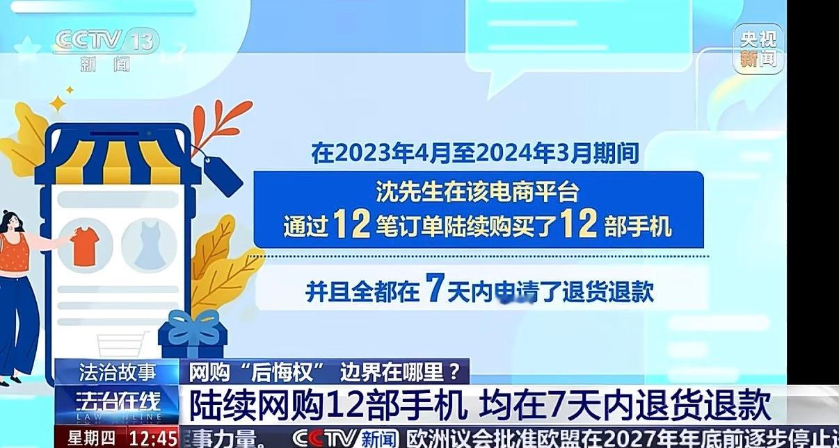 男子4买4退同款手机被拒 一年内买12台手机退12台?同型号的手机买了四次退了四次?真丢人现眼啊,平台察觉异常不给退了,这买家还给平台告了。法院判得好啊,驳回了买家的诉讼,规矩是给正常消费者用的,不是让人钻空子白嫖的。