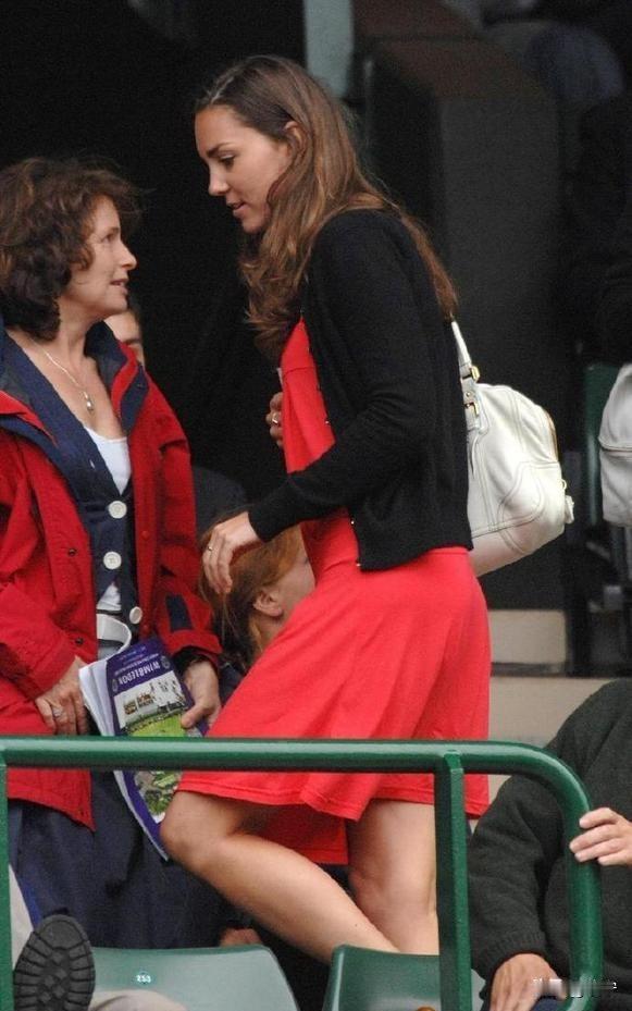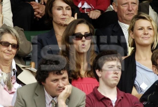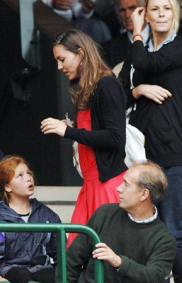 2007年7月2日,凯特.米德尔顿与友人一起观看温网比赛! 那时的凯特已经25岁了,但是自从大学毕业后,却一直没有参加正式的工作。 有着大把时间的她,除了等待威廉王子,陪伴威廉王子外,其他的时间喜欢逛街,喜欢运动,婚后的她是温网比赛的忠实粉丝,婚前的她也不例外。 穿着一袭红色短裙,披着黑色针织衫,少了成为王妃后的优雅和贵气,但是却很有年轻少女的活泼和青春。 挤在拥挤的看台和大家看比赛,这样的凯特并不特别出众,但是不时嘟嘴等俏皮的姿态,却很可爱。 路易小王子这么鬼马可爱,应该也是遗传了凯特王妃吧? 毕竟路易可是最像凯特王妃的孩子!