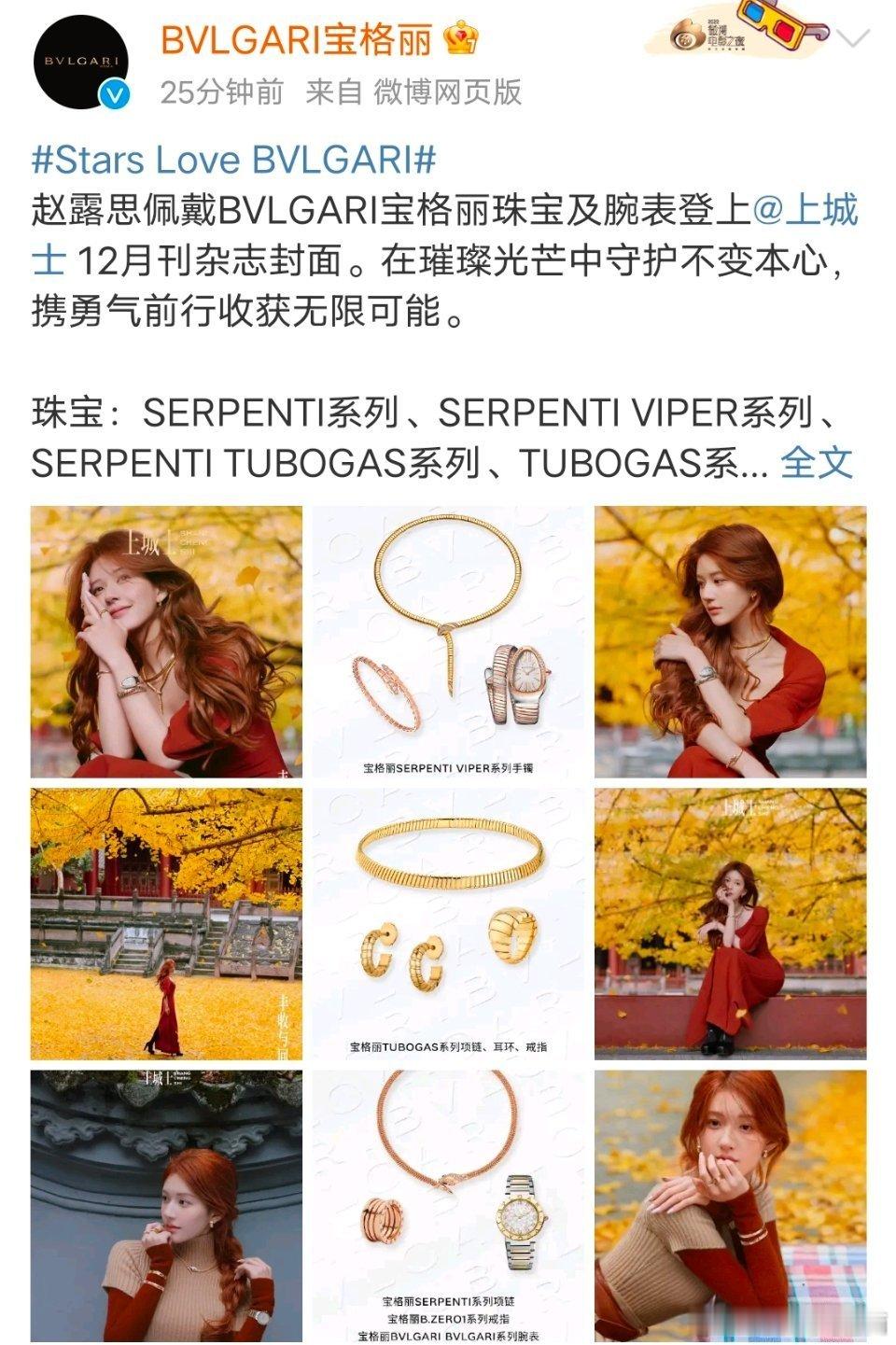 宝格丽连发两条赵露思宝格丽认领得都没这么快过 更正:现在是三条了,这是要打烂墨子的脸啊,对代言人满意程度溢于言表
