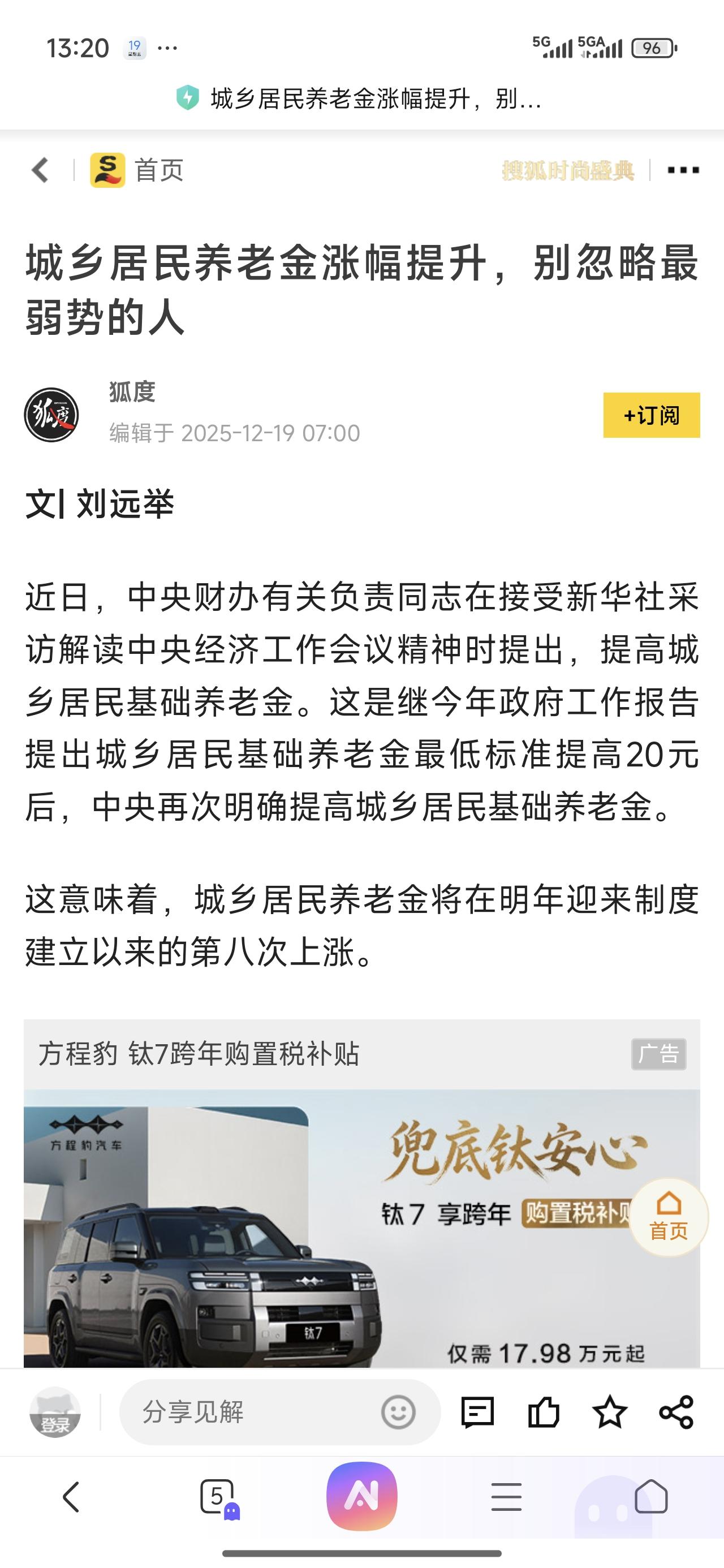 感谢有良心、关注最普通人群,为普通人发声的真专家们。现在最难的是那些七老八十还在农村劳作讨生活的老人,几十年前,他们抗洪建大坝,交了几十年的公粮,现在一个月200块的养老金确实太少了,提到1000都太少,短期内尽量提到一个月1000吧,让这批老人也享受一下国家繁荣的红利,再晚怕是很多人都享受不到了。敢说实话的专家 农民养老金该不该上涨