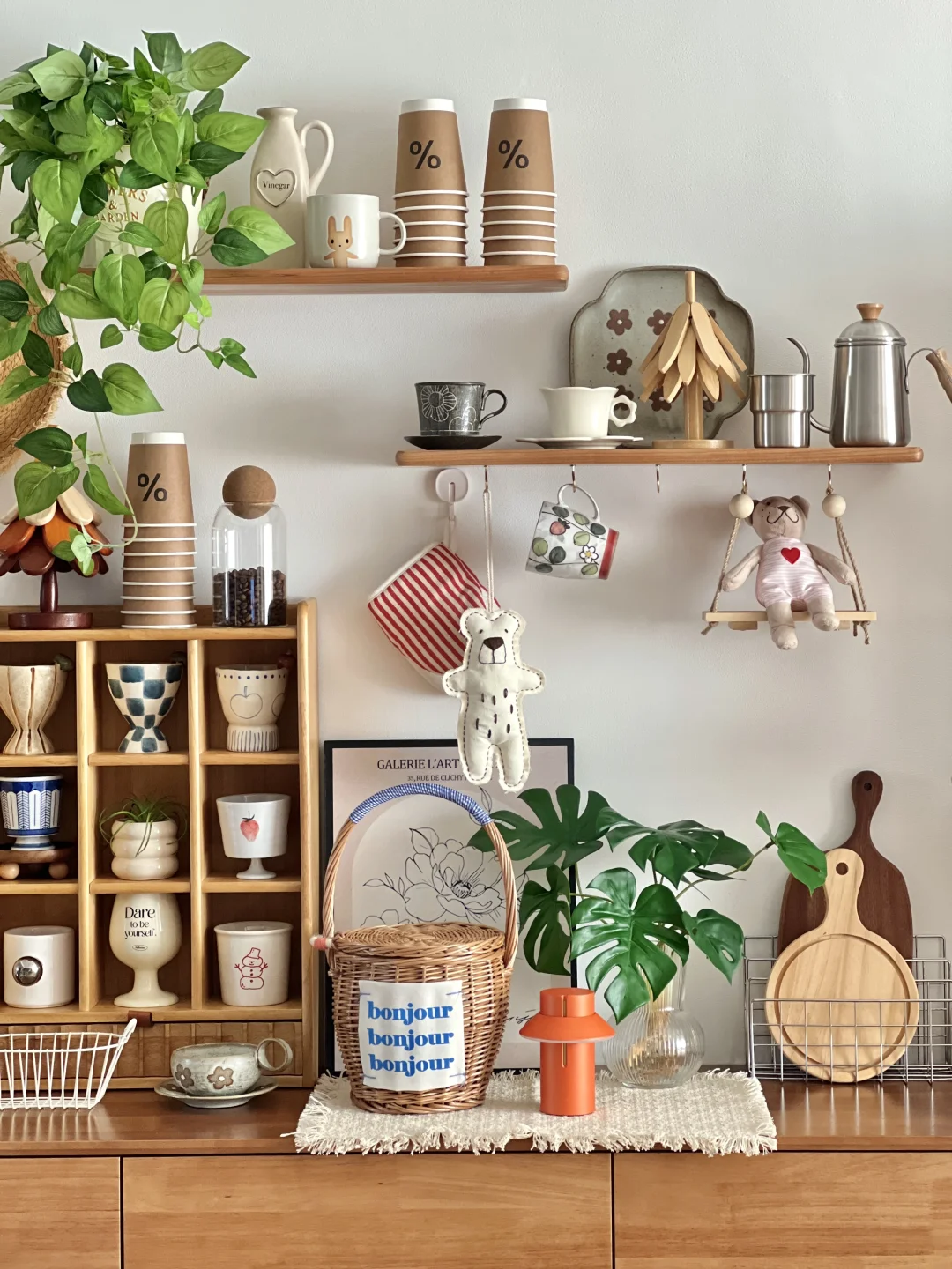 0元DIY❗️我给咖啡角做了个会荡秋千的置物架