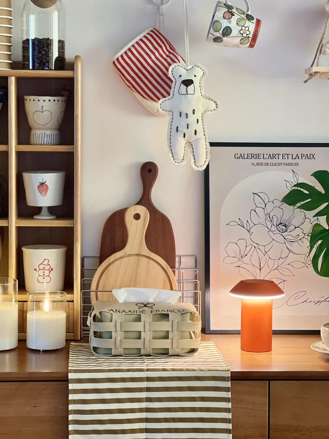 最近在客厅角落布置了家庭咖啡角 每一件都是心头好 ❤️ 最点睛的就是这盏设计感满满的橙色小台灯啦! 🌟模块化设计太有趣了! 灯罩可以正放反放像玩积木一样解压 触控开关轻轻一碰就亮,瞬间氛围感拉满✨