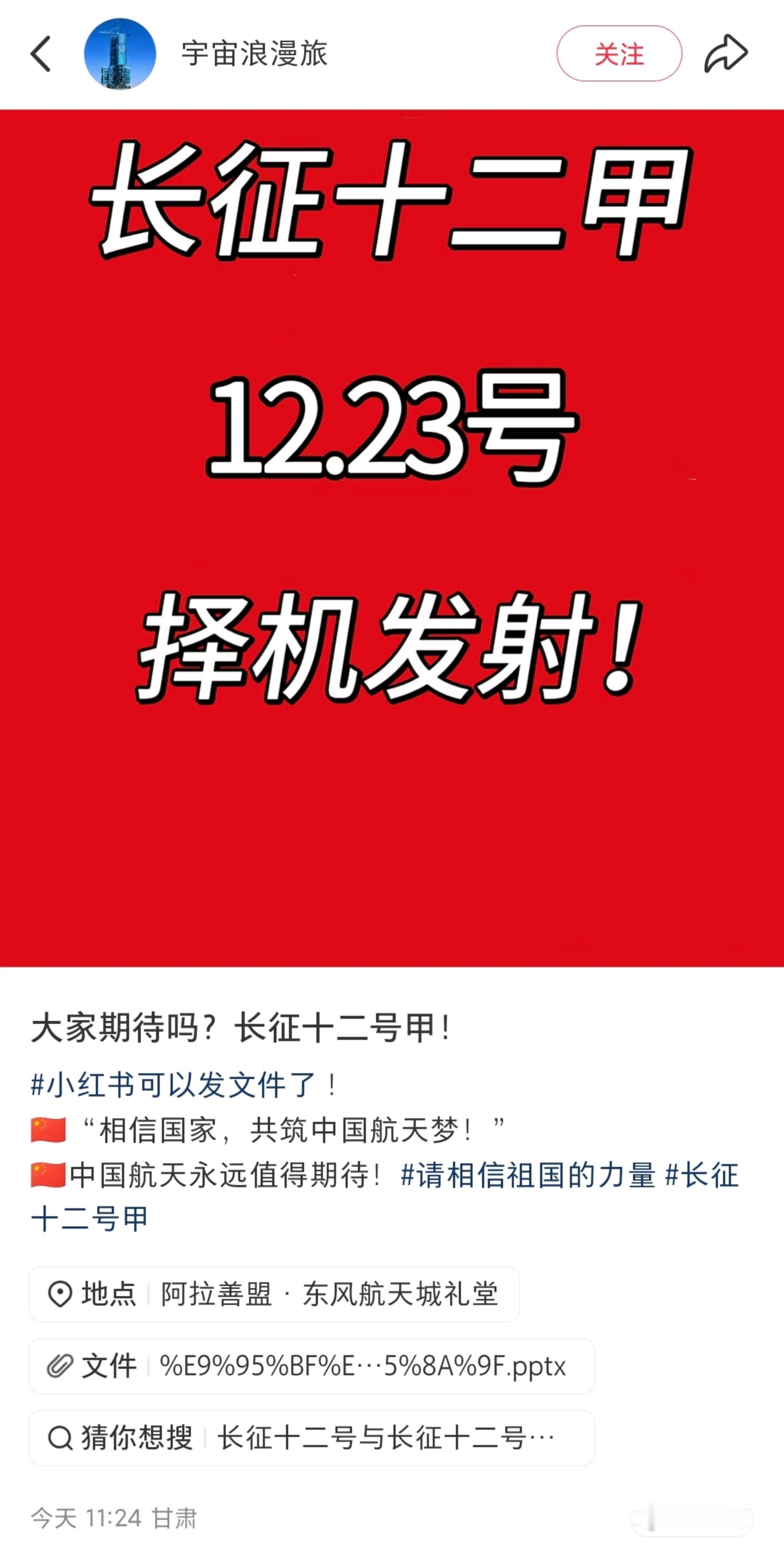 旅宣传闻长征十二号甲运载火箭首飞时间,准确时间还是得看航宣。
